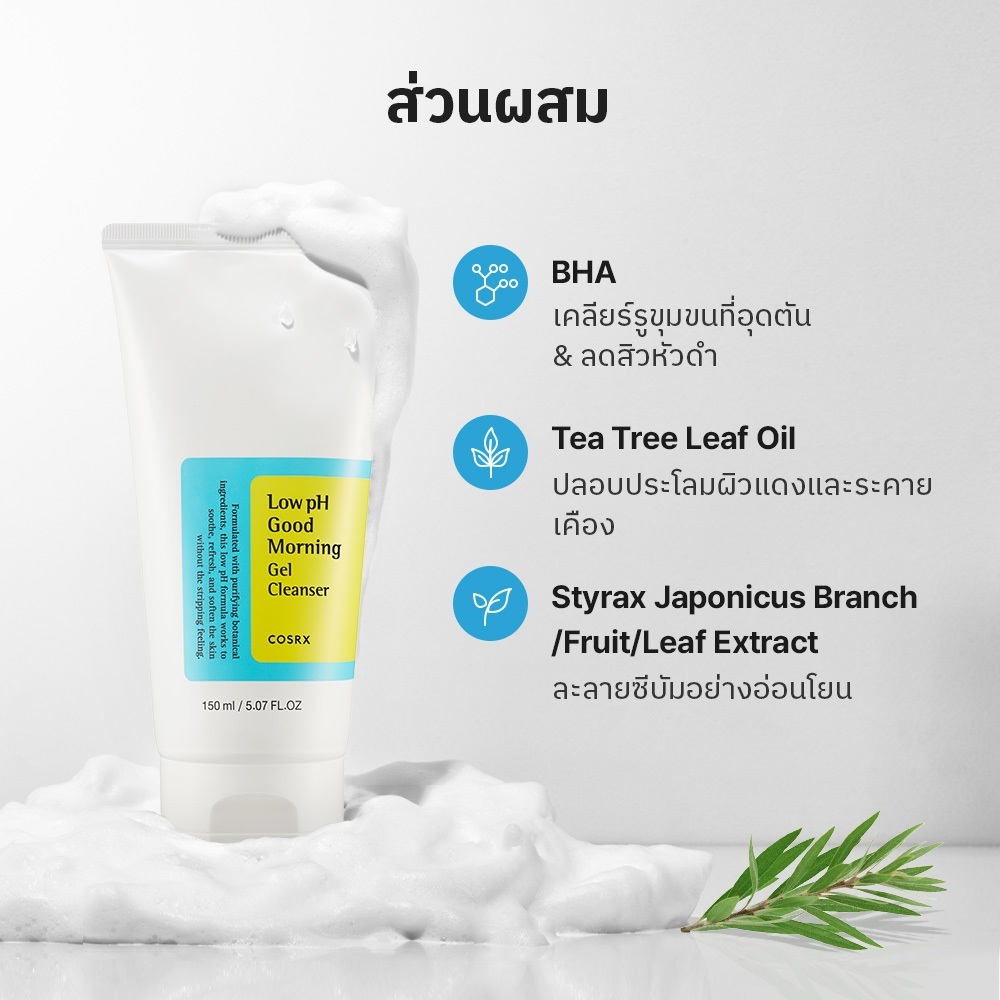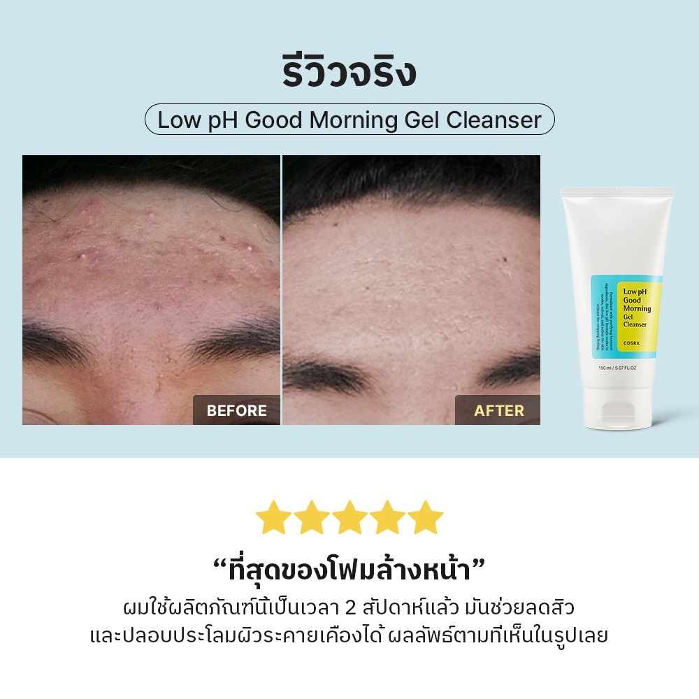 Cosrx Low pH Good Morning Gel Cleanser 150ml น้ํายาทําความสะอาดผิวหน้าล้างหน้ารักษาสิวอ่อนโยนทุกวันสําหรับผิวทั้งหมด