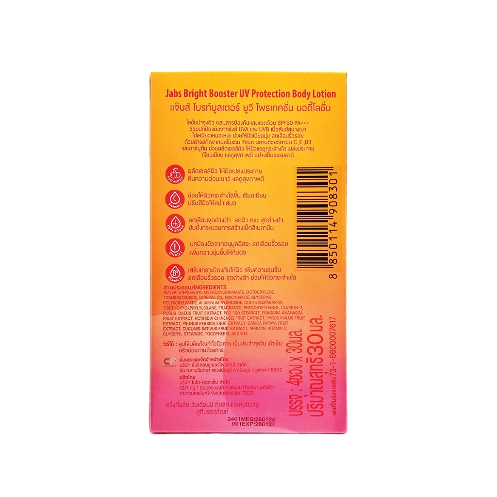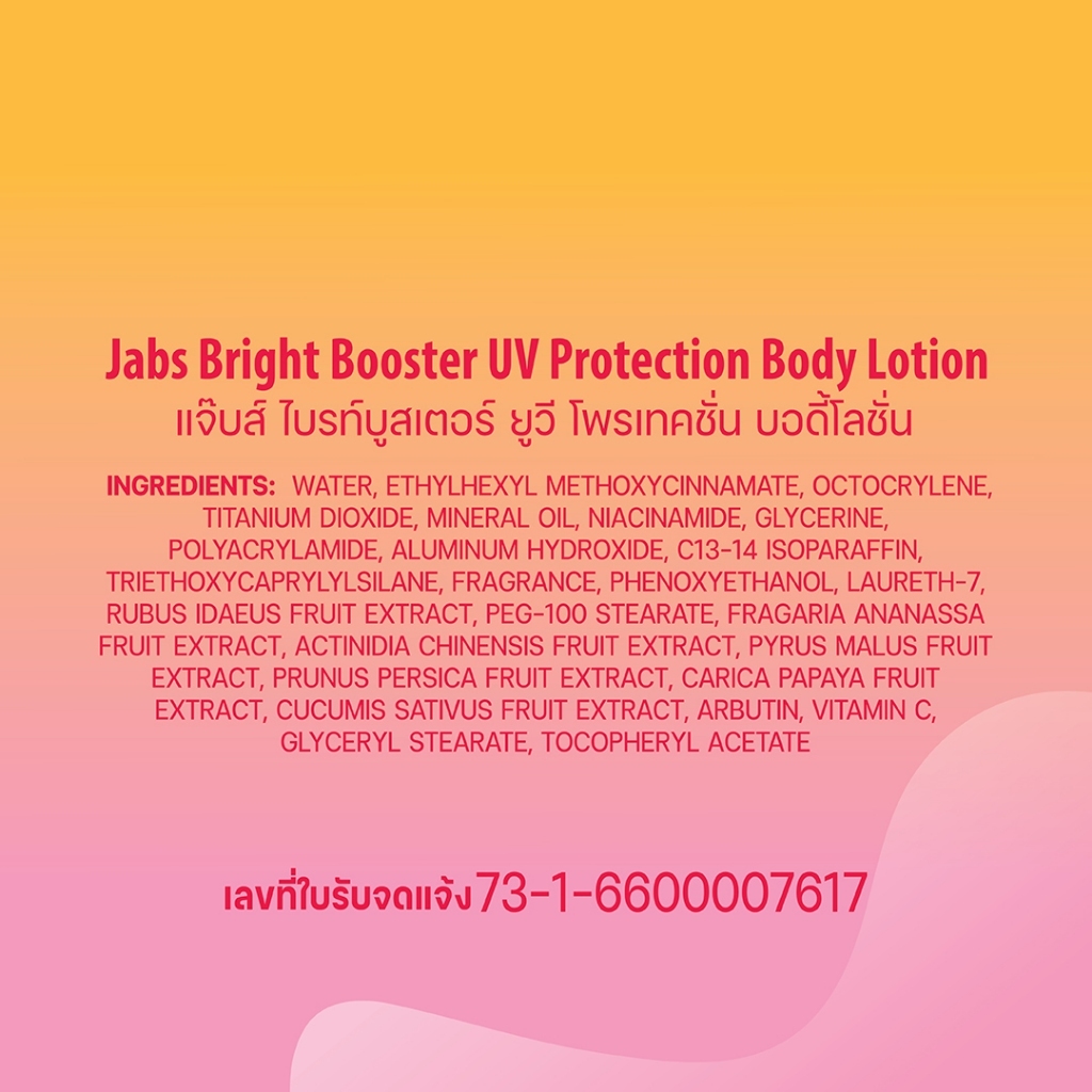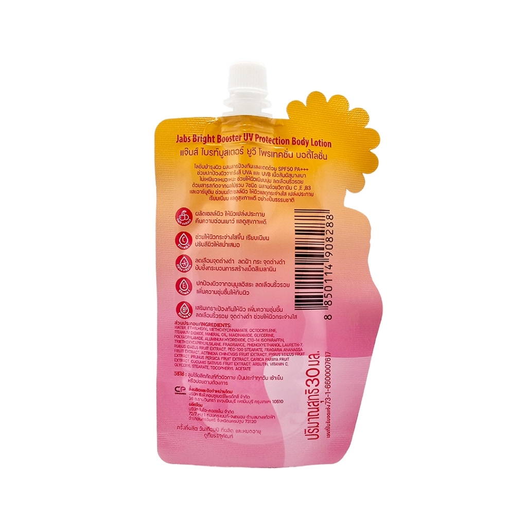 (4ซอง/กล่อง) Jabs กันแดด แจ๊บส์ ไบรท์บูสเตอร์ UV โพรเทคชั่น บอดี้โลชั่น [8301] SPF50 PA+++ ซอง 30ml