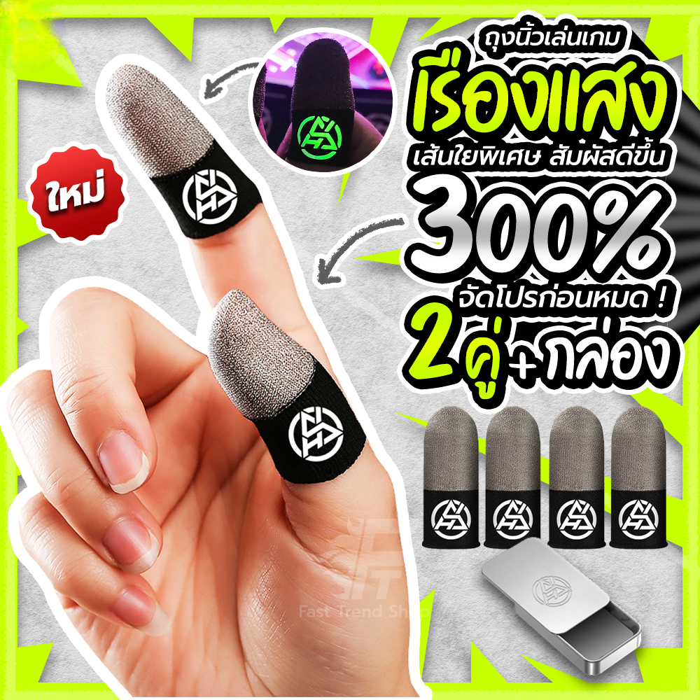 [1 แถม 1] ถุงนิ้วเล่นเกมมือถือ เรืองแสง กันน้ำ กันเหงื่อ ขนาดฟรีไซส์ รวม 2 คู่