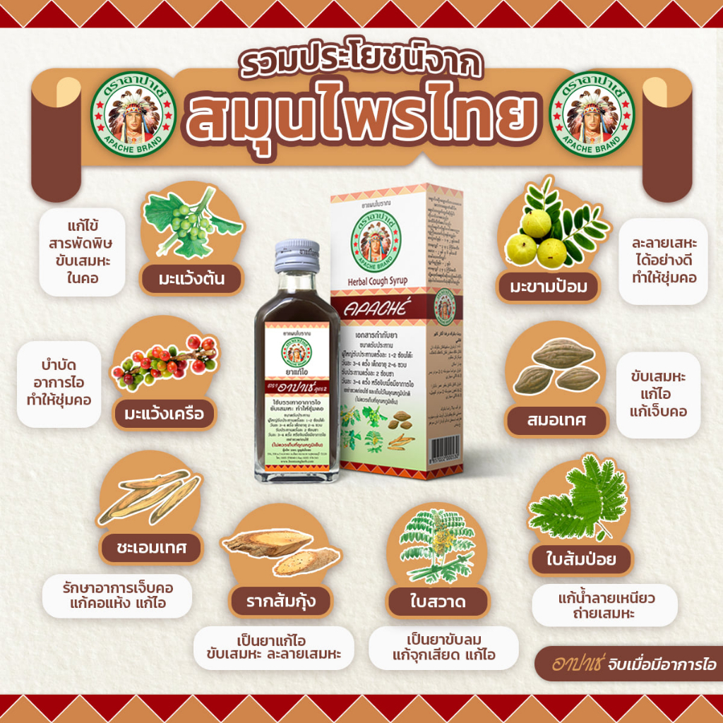 🔥พร้อมส่ง🔥 ยาน้ำแก้ไอ อาปาเช่ สูตรดั้งเดิม มะขามป้อม บรรเทาอาการไอ เจ็บคอ เสมหะ ทำให้ชุ่มคอ 60 มล. Apache Cough Syrup