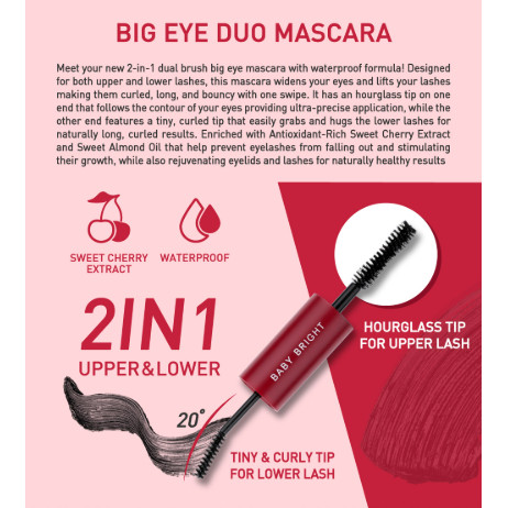 Baby Bright Big Eye Duo Mascara 2IN1 Upper&Lower 4g+4g เบบี้ไบร์ท บิ๊กอาย ดูโอ้ มาสคาร่า 8ก. ดำ