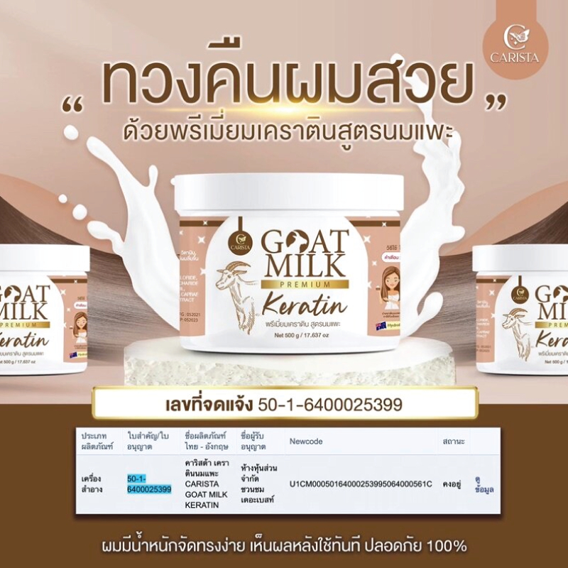 Carista เคราตินนมแพะ GOAT MILK Keratin กระปุก 500 กรัม