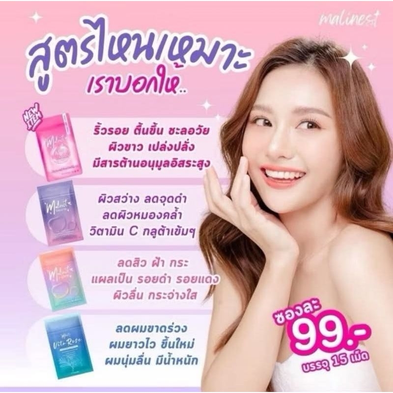 [💓พร้อมส่ง] แท้💯 มาลิเนส 4 สูตร Malinest Gluta C TA เม็ดเคี้ยว คอลลาเจน มะลิเนสท์ กลูต้ามะลิเนส ลดสิว ลดฝ้า ลดกระ หน้าใส
