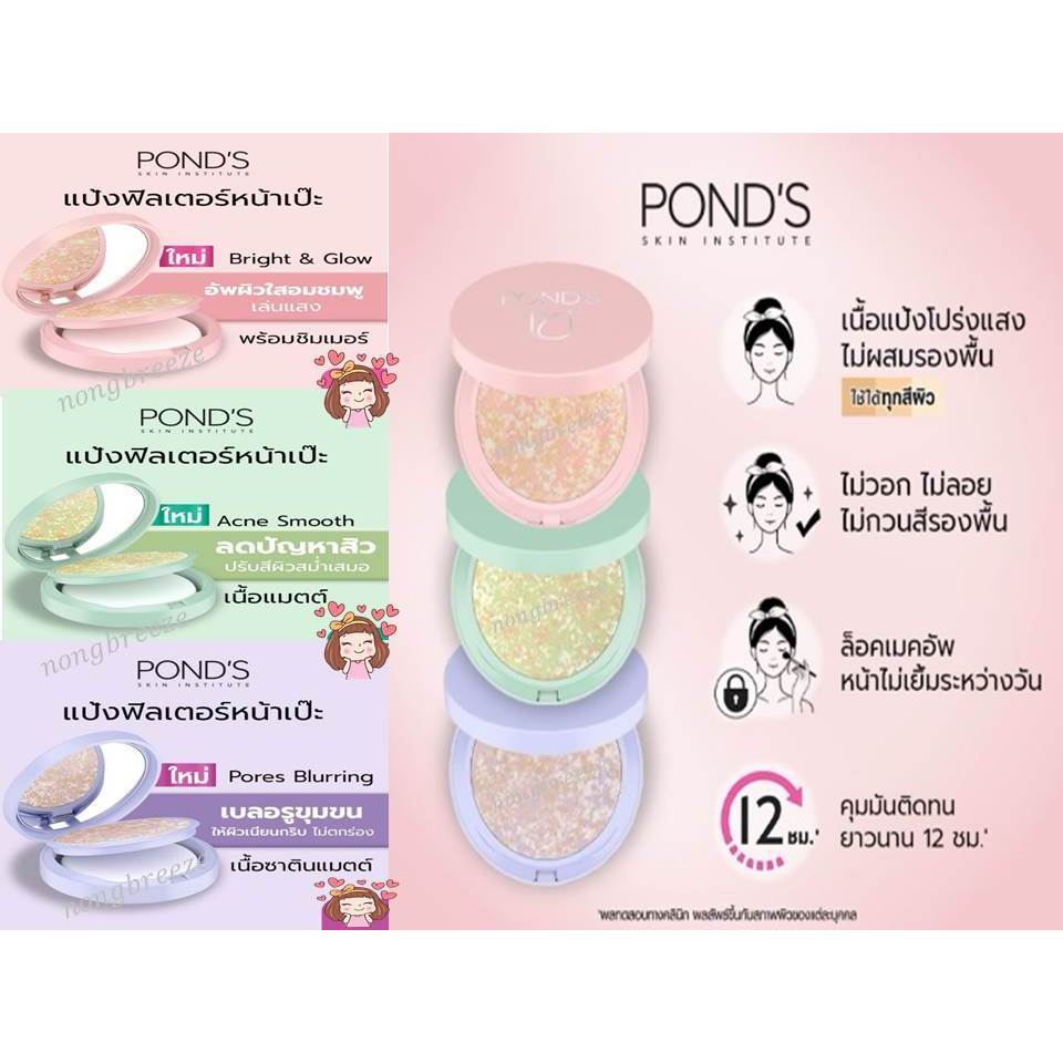 Pond's Translucent Compact Powder แป้งตลับอัดแข็ง พอนด์ส แป้งฟิลเตอร์หน้าเป๊ะ 4.5 กรัม มี 3 สูตร