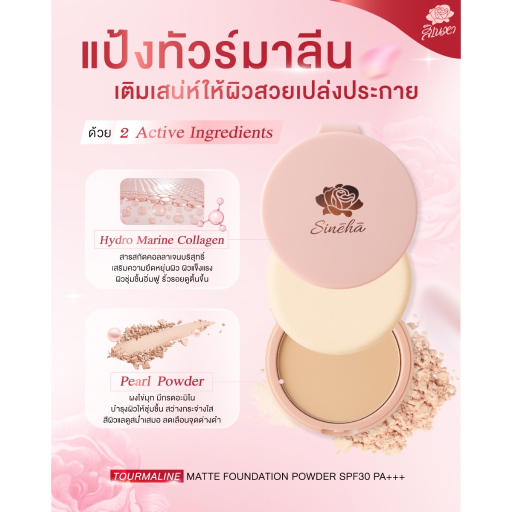 Sineha Tourmaline Matte Foundation Powder SPF30 PA+++ 5 g.แป้งพัฟทัวร์มาลีน