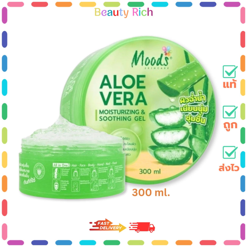 (1 กระปุก) Moods Aloe Moisturizing & Soothing Gel มูดส์ อโล เวร่า มอยซ์เจอร์ไรซิ่ง (300 g.)