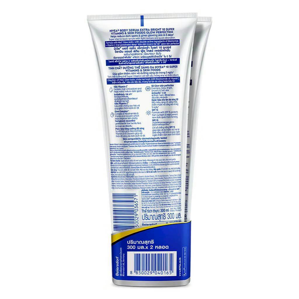(1แถม1) NIVEA Nody Serum Extra Bright 10 Super Vitamin&Skin Foods 300มล.