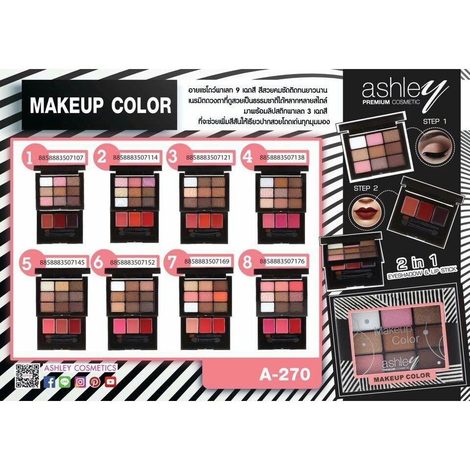 เมคอัพเซ็ต อายแชโดว์ 9 สี ลิป 3สี แอชลีย์ ASHLEY MAKE UP COLOR 9 EYESHADOW 3 LIPSTICK A-270