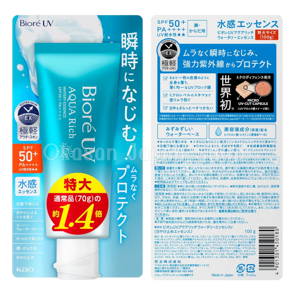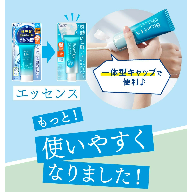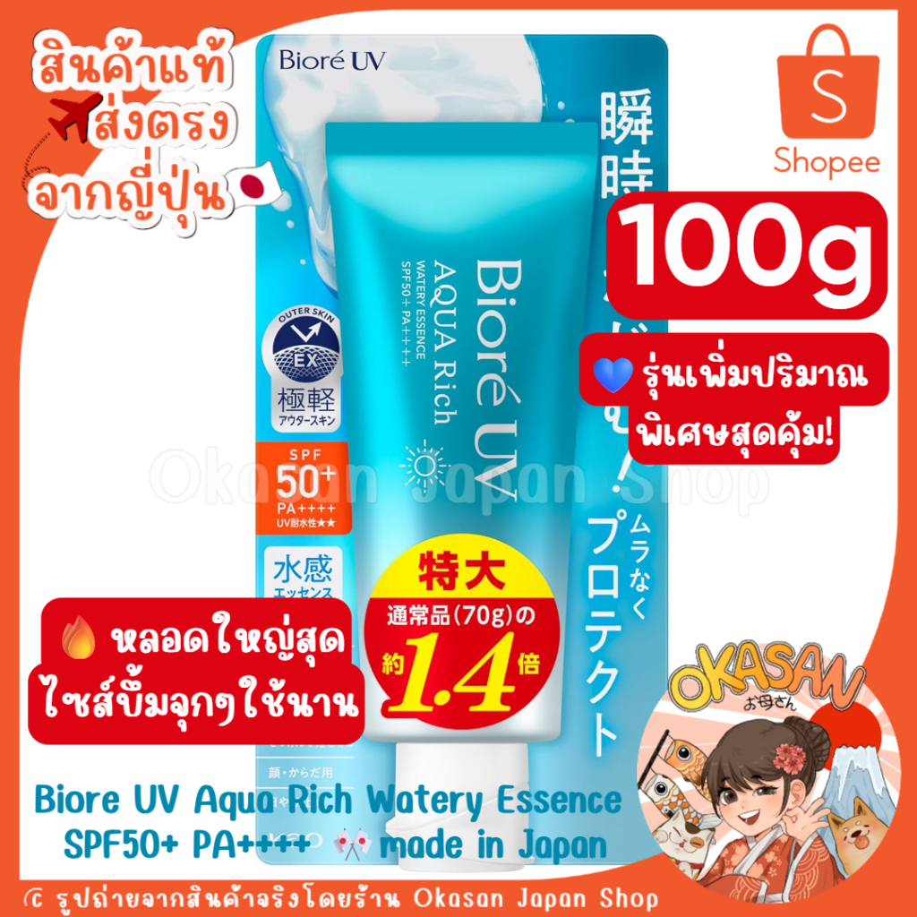 🇯🇵แท้/พร้อมส่ง🇯🇵 ถูกที่สุด✅รุ่นเพิ่มปริมาณ100g สุดคุ้ม❗️กันแดด Biore UV Aqua Rich Watery Essence SPF50+ PA++++