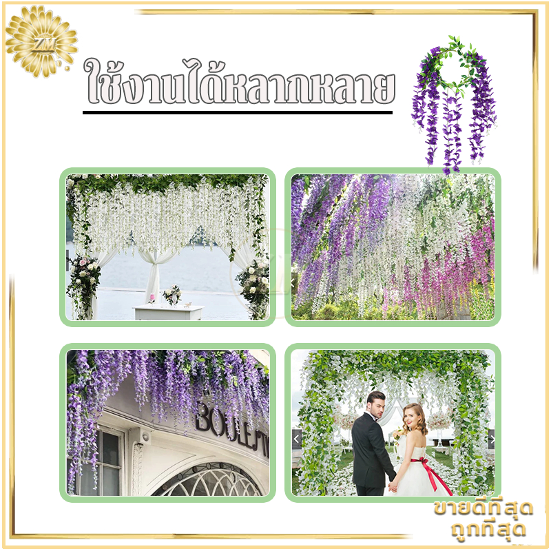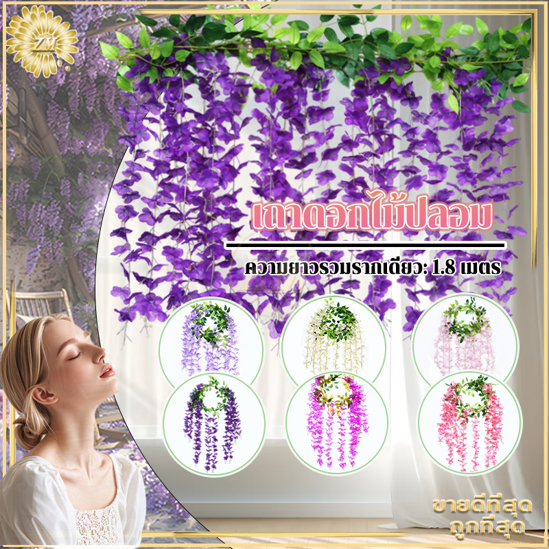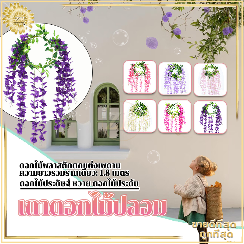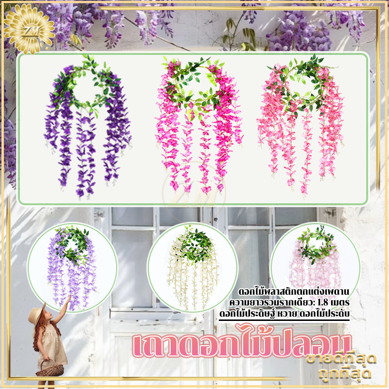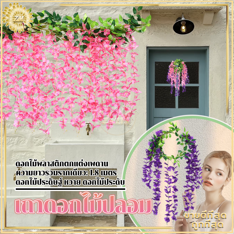 เถาดอกไม้ปลอม เถาวัลย์ปลอม เถาวัลย์ดอกไม้ปลอม ดอกไม้ตกแต่ง ยาว180cm สําหรับตกแต่งบ้าน งานแต่งงาน/สวน/ผนัง/ตกแต่งในร่ม