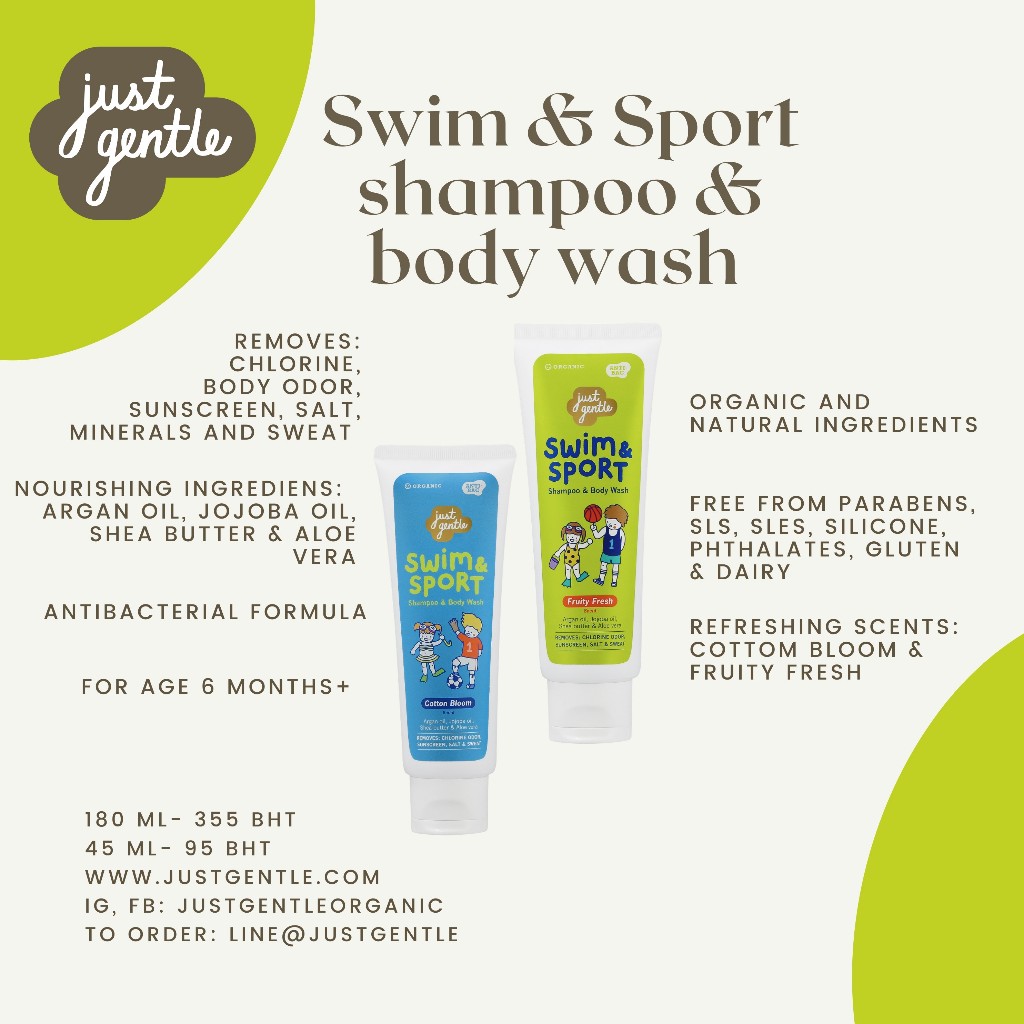 Just Gentle เจลสระผม & อาบน้ำ หลังเล่นกีฬา สำหรับเด็ก Swim & Sports Shampoo & Body Wash - Cotton Bloom (45 ml / 180 ml)