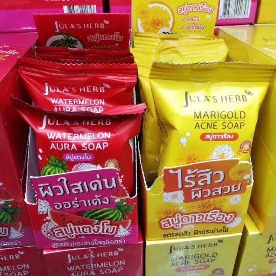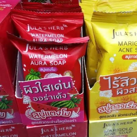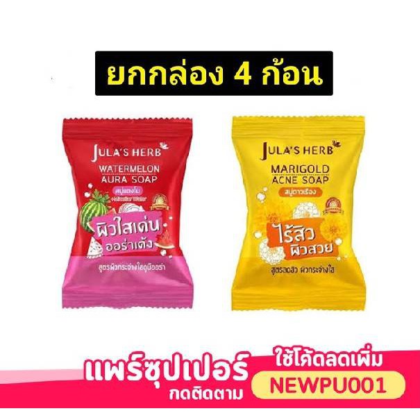🔥 4 ก้อน 209 บาท 🔥 Jula's Herb สบู่จุฬาเฮิร์บ 60 กรัม ( สบู่แตงโม , สบู่ดาวเรือง ) ครีมซอง สบู่