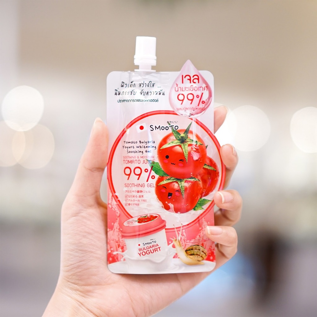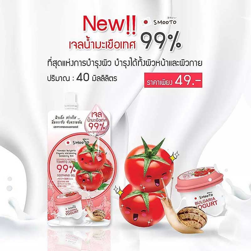 (1ซอง) Smooto Tomato Bulgaria Yogurt Whitening Soothing Gel 40ml. เจลมะเขือเทศ 92%โทเมโท บัลกาเรีย โยเกริ์ต เจล