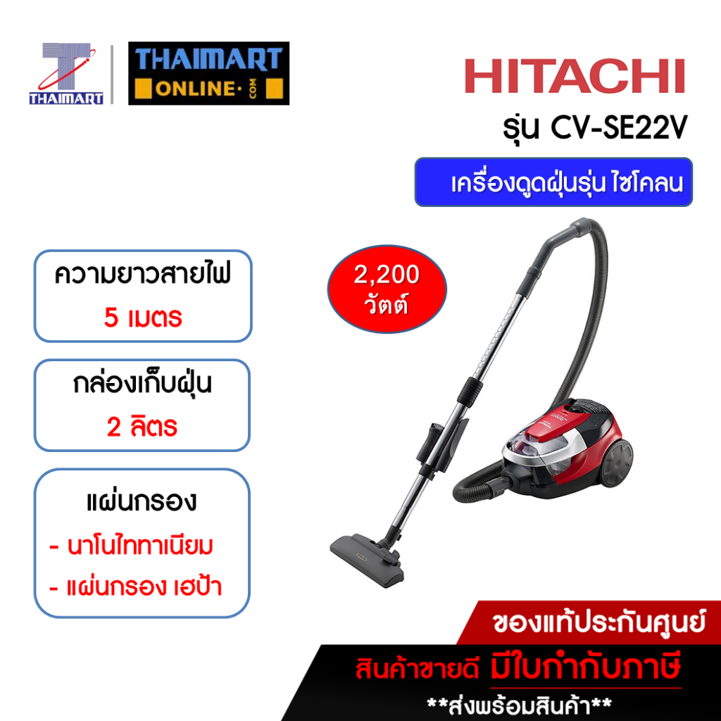 HITACHI เครื่องดูดฝุ่น2200วัตต์ รุ่น CVSE22V แบบกล่องอัดฝุ่นเป็นก้อน รุ่น CV-SE22V THAIMART ไทยมาร์ท