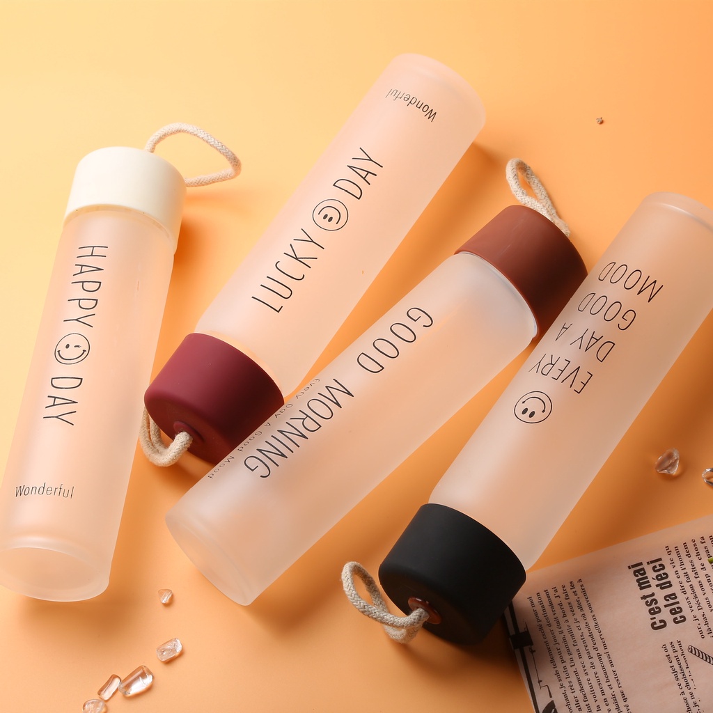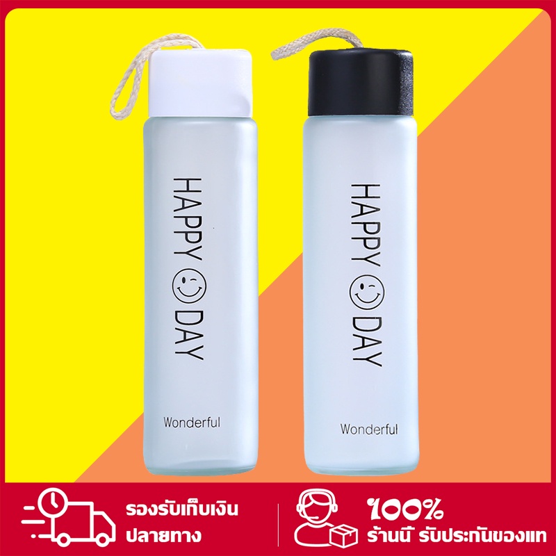 ขวดน้ำ แบบขวดแก้ว400มล. ขวดน้ำพกพา กระบอกน้ำ ราคาถูก ความจุสูง มีเชือก
