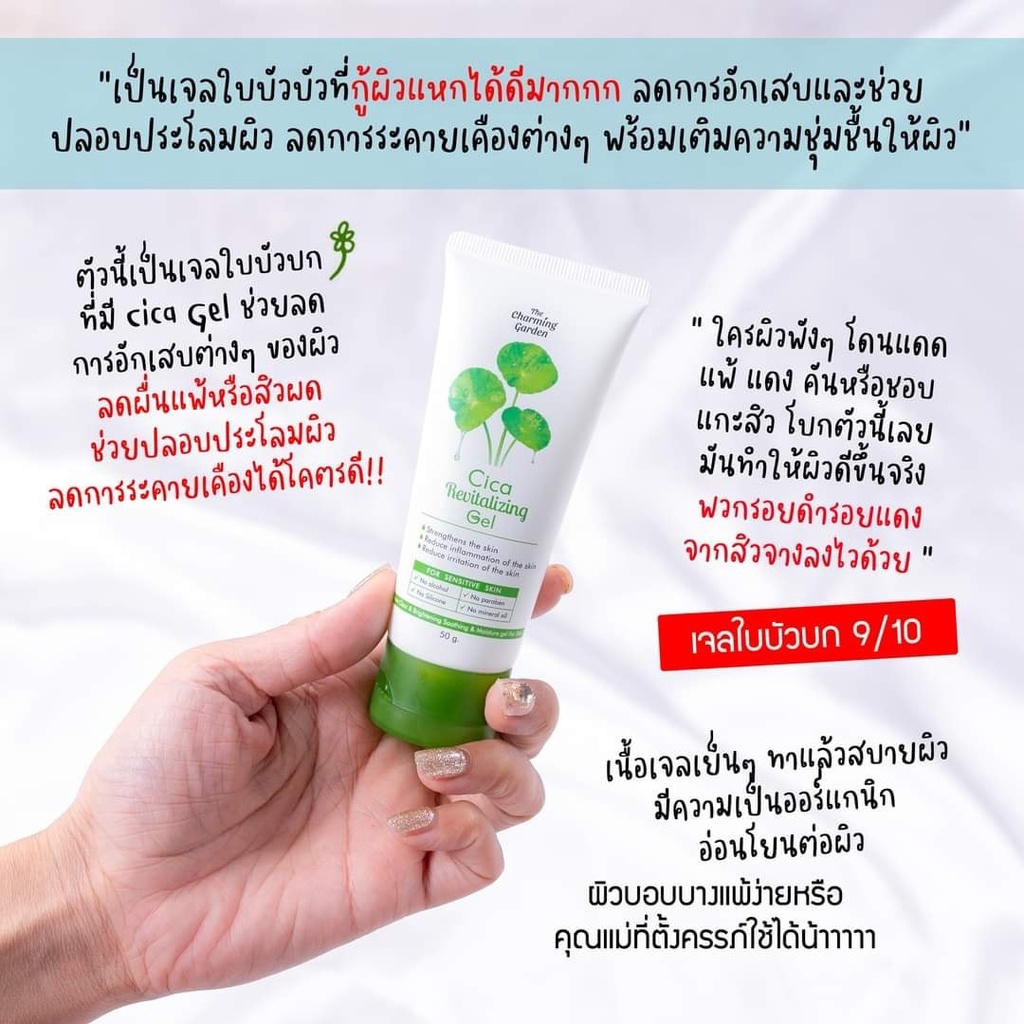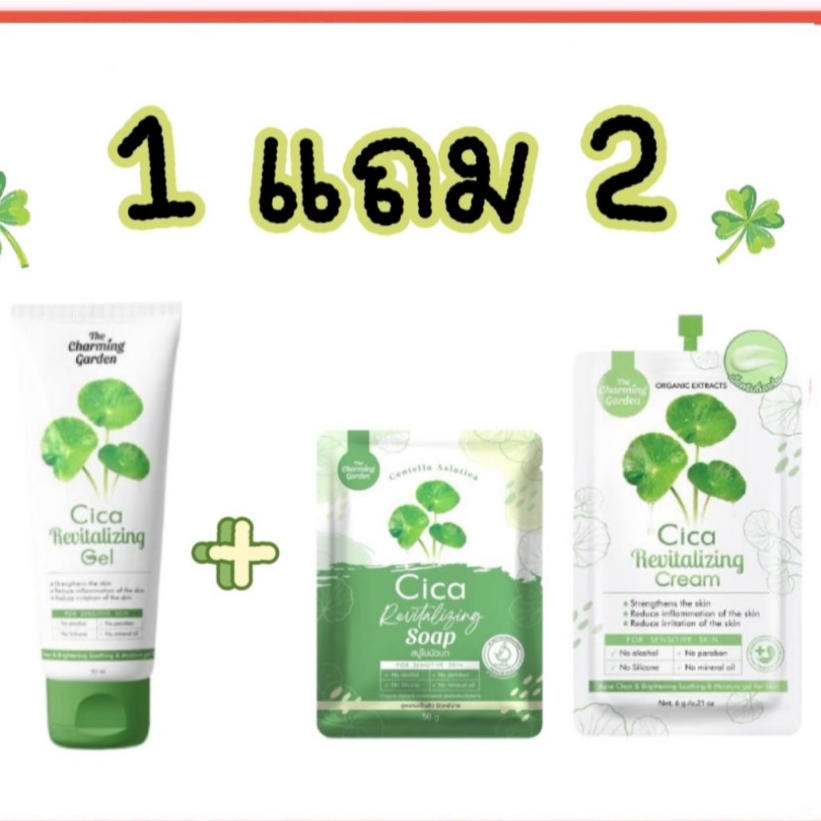 (1แถม2) The Charming Garden Cica Revitalizing Gel เจลใบบัวบก+สบู่ใบบัว+ครีมใบบัว