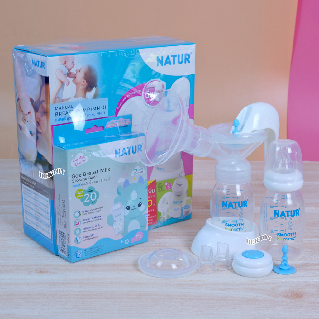 Natur เนเจอร์ ปั๊มนมแบบคันโยก รุ่น MN-3 แถมฟรีถุงเก็บน้ำนม 8oz แพ็ก 10 ใบ