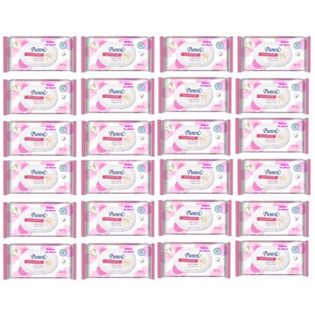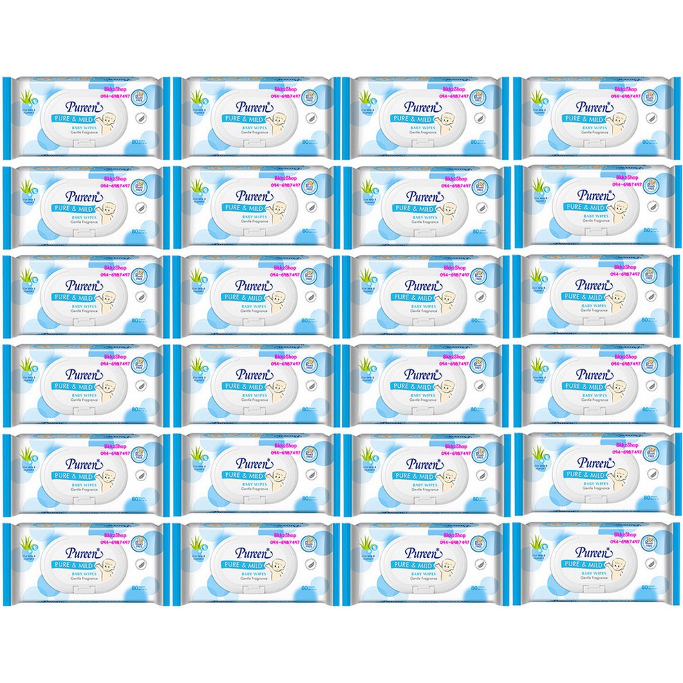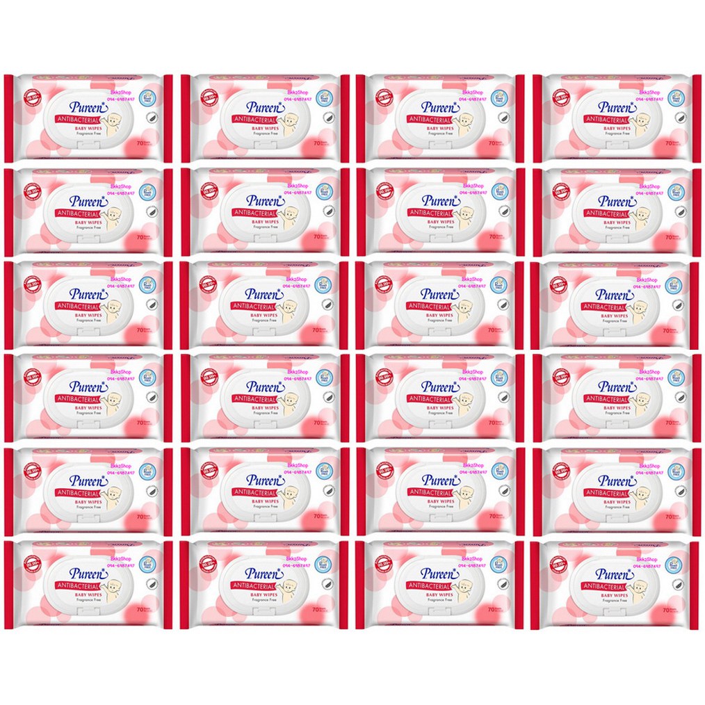 Pureen Baby Wipe เพียวรีน เบบี้ไวพ์ สูตรเซนซิทีฟ/เพียวแอนด์มาย/แอนตี้แบคทีเรีย ยกลัง 24 ห่อ (1680 -1920 แผ่น)