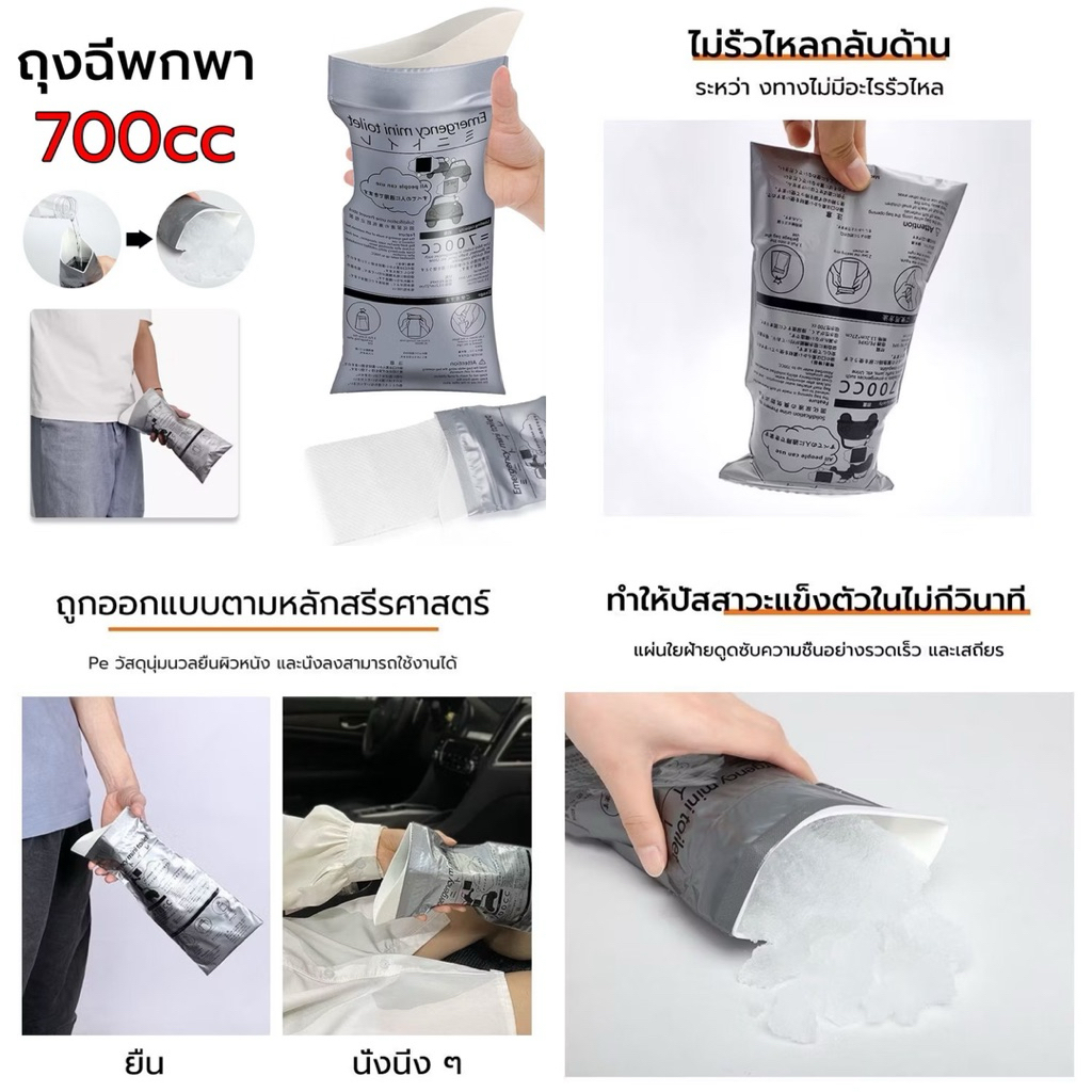 kingshopping(700)ถุงปัสสาวะ ความจุ700ccแบบพกพา ถุงฉี่เจล ใช้ได้ทั้งผู้หญิงและผู้ชาย เหมาะสำหรับกลางแจ้งและการจราจรติดขัด