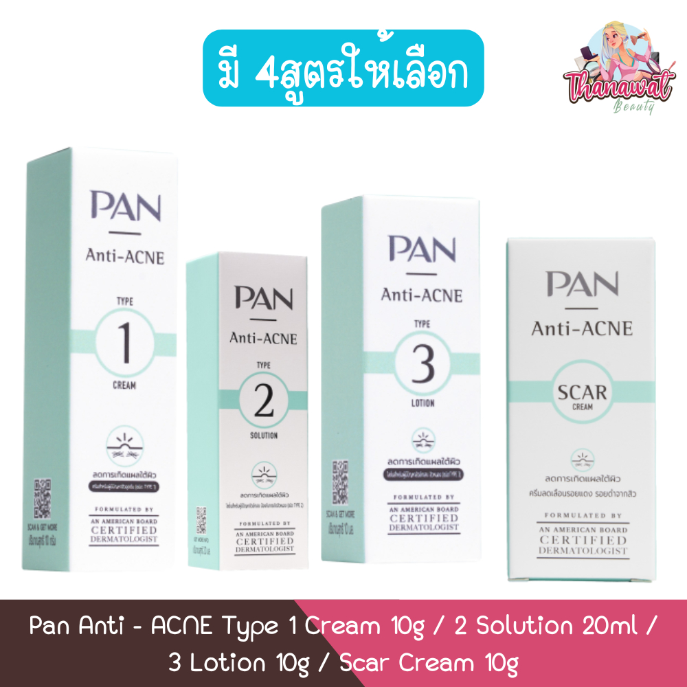 Pan Anti - ACNE Type 1 Cream 10g / 2 Solution 20ml / 3 Lotion 10g / Scar Cream 10g แพน แอนตี้ แอคเน่