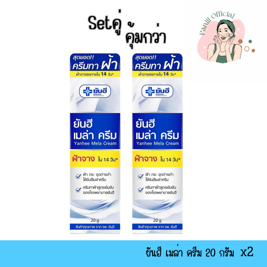 [Setคู่คุ้มกว่า‼️]ครีมทาฝ้า เมล่าครีม ยันฮี 20g. x2หลอด | ฝ้า กระ จางลงภายใจ 14 วัน