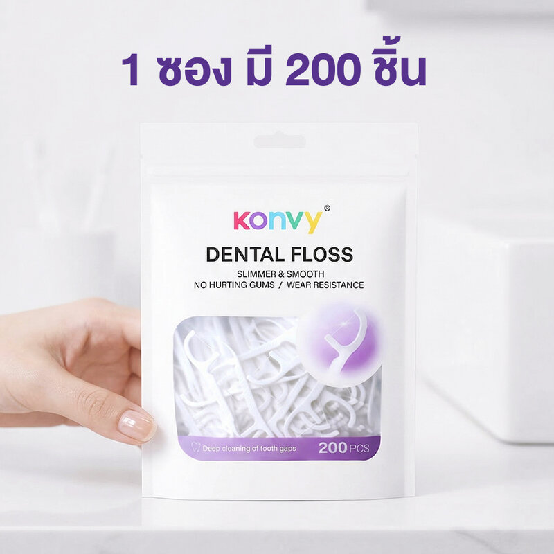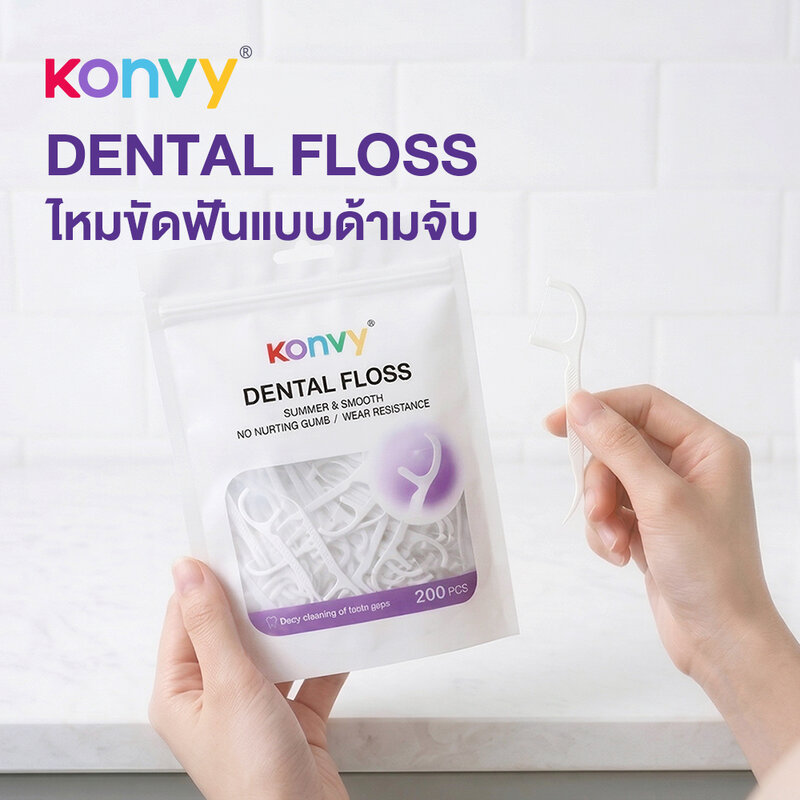 Konvy Dental Floss 200pcs คอนวี่ ไหมขัดฟันพร้อมด้ามจับ 200ชิ้น.