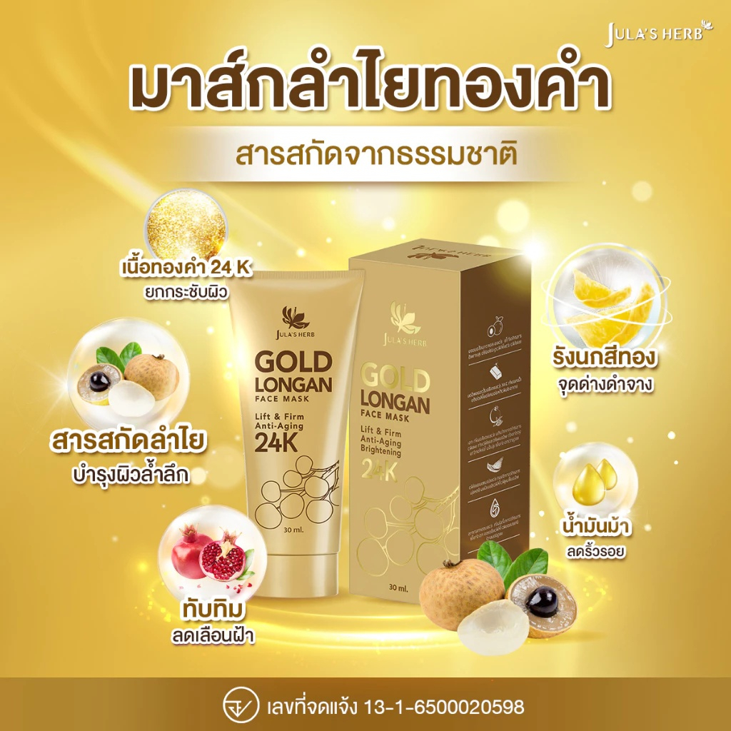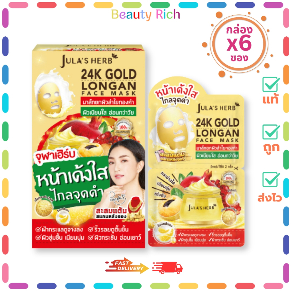 (กล่อง 6 ซอง) JULA’S HERB GOLD LONGAN FACE MASK มาส์กลำไยทองคำ 24K (2+2 กรัม)