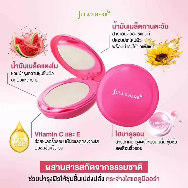 (กล่อง 3 ชิ้น) Jula’s Herb แป้งพัฟแตงโมจุฬาเฮิร์บ 1 ตลับ คุมมัน เบลอรูขุมขน (5 g.)