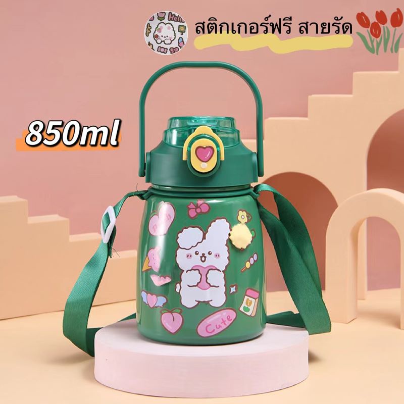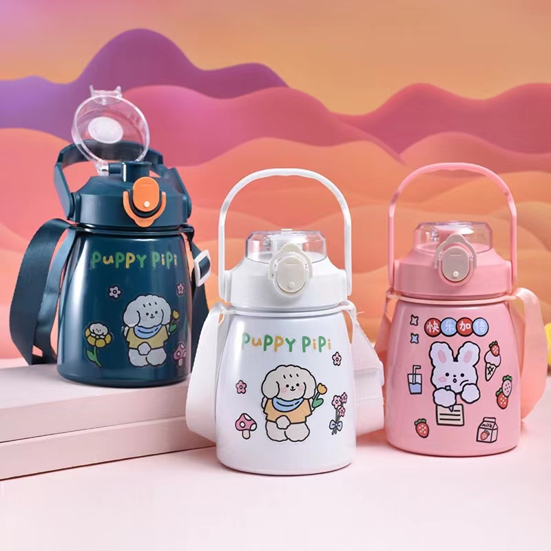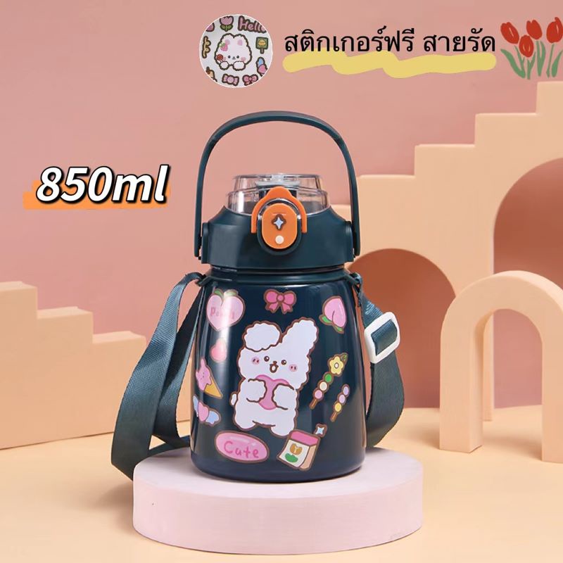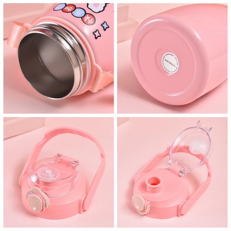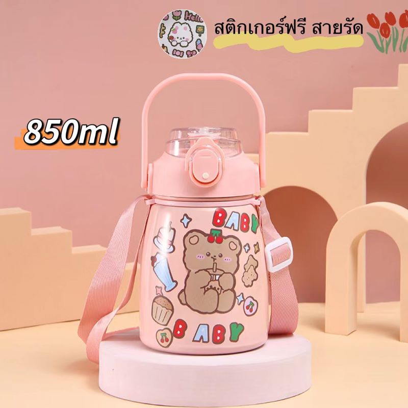 (SH-12)ขวดน้ำเก็บความร้อน - เย็น ขนาด 1 ลิตร มีหูจับพกพาง่าย แถมฟรี สติ๊กเกอร์และตุ๊กตา 3D แก้วเก็บอุณภมิ ขวดน้ำเด็กพกพา