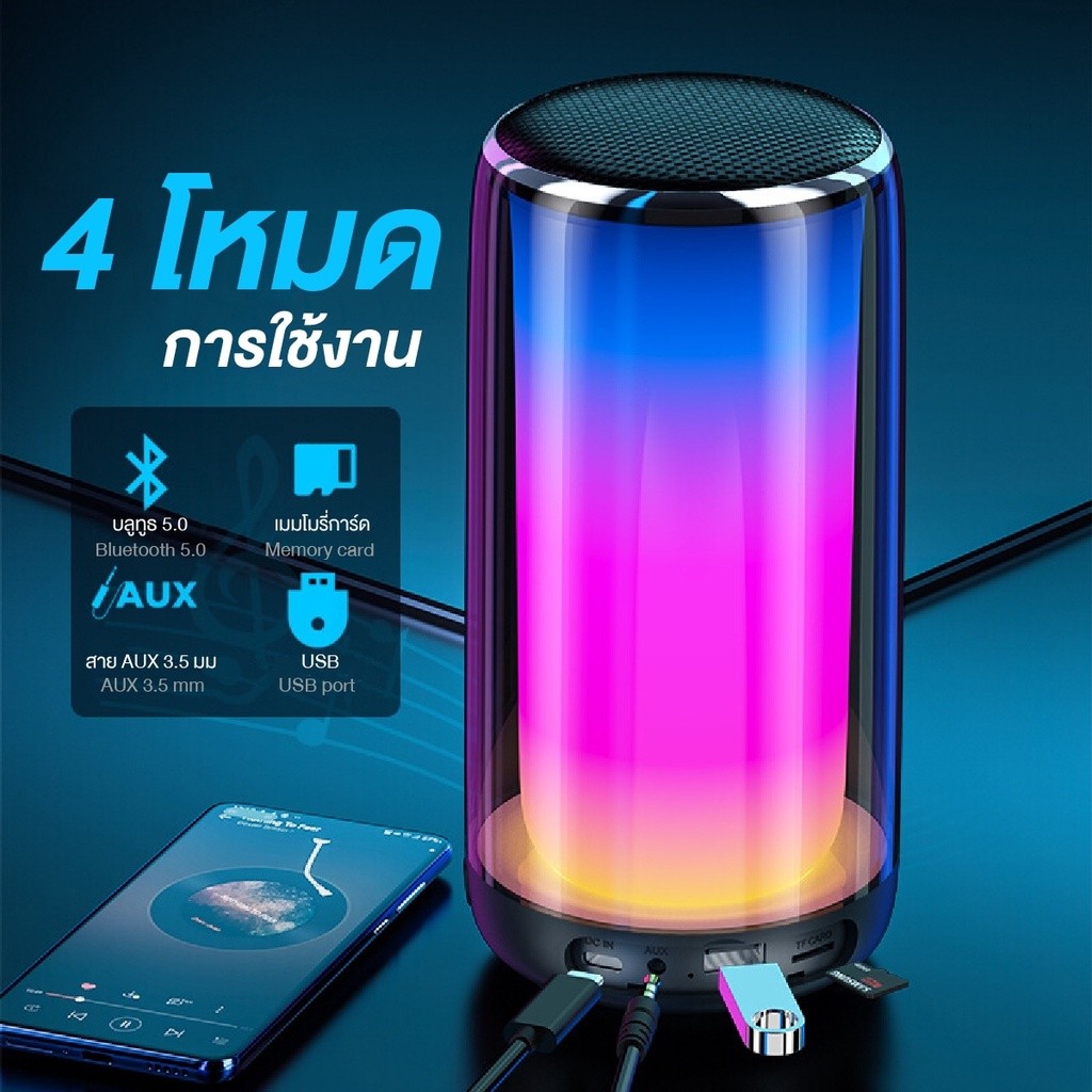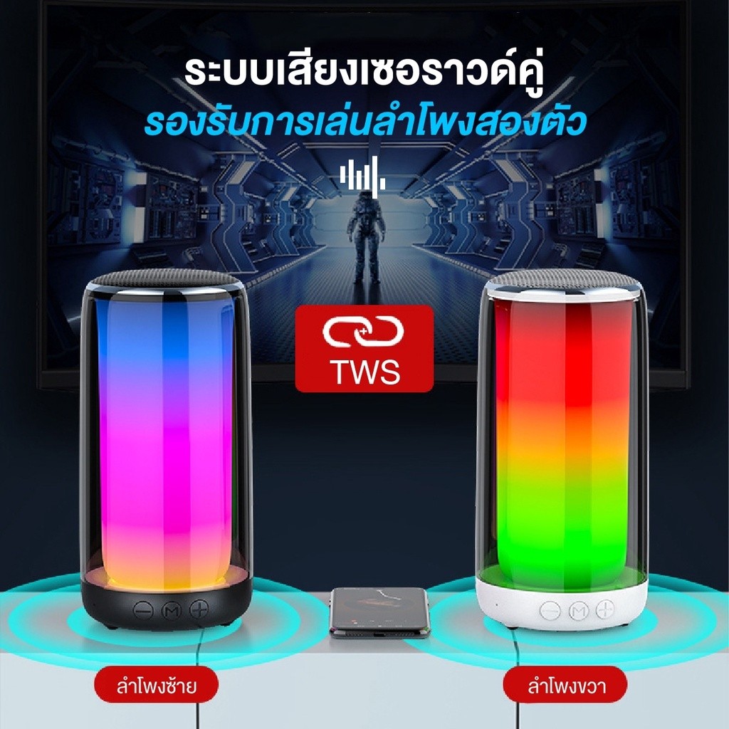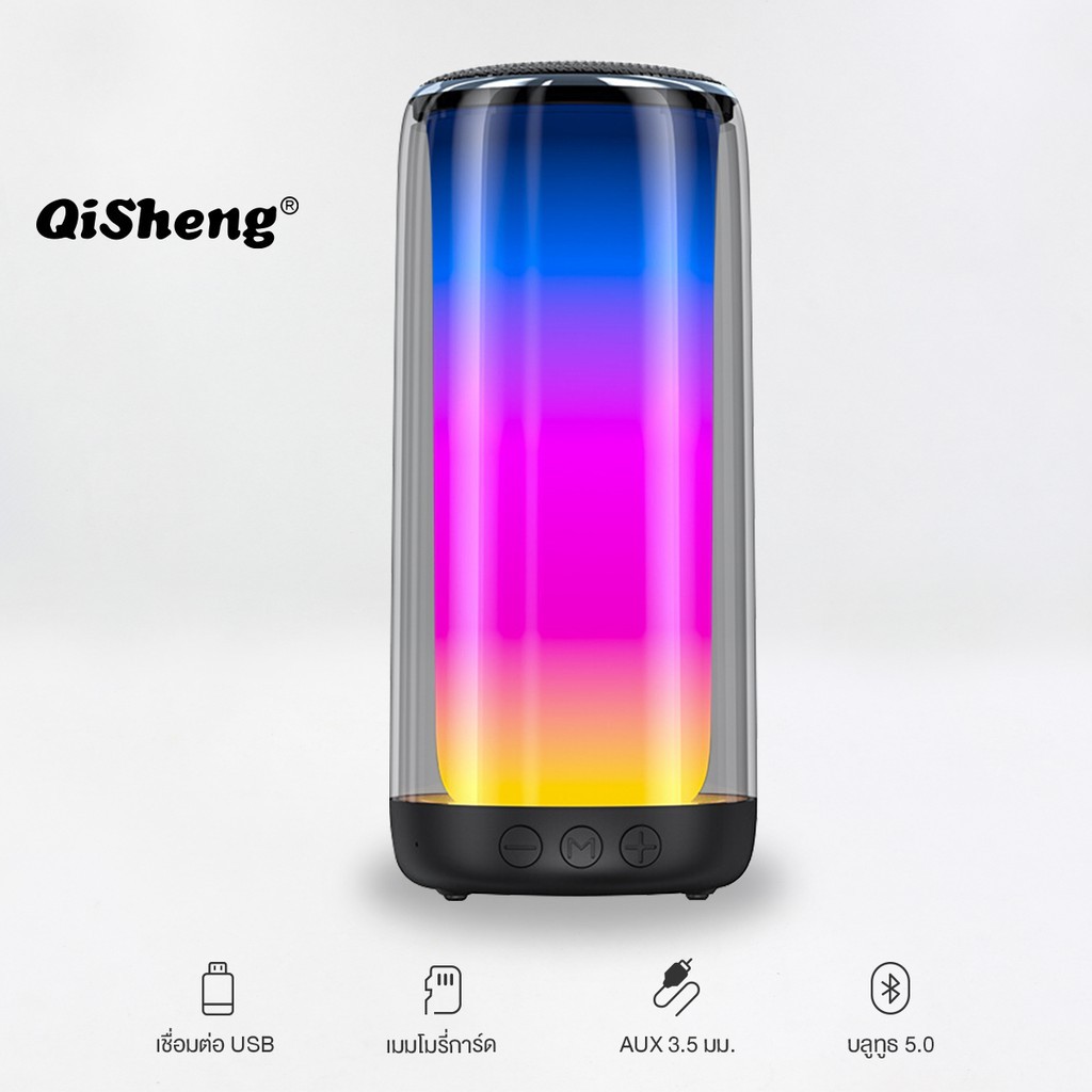 ลำโพงบลูทูธ Qisheng Q38 มีไฟ BT5.0 ระบบไฟ LED หลากสี 360 องศา ระบบเสียงเซอราวด์รอบทิศทาง คุณภาพเสียงระดับ HIFI