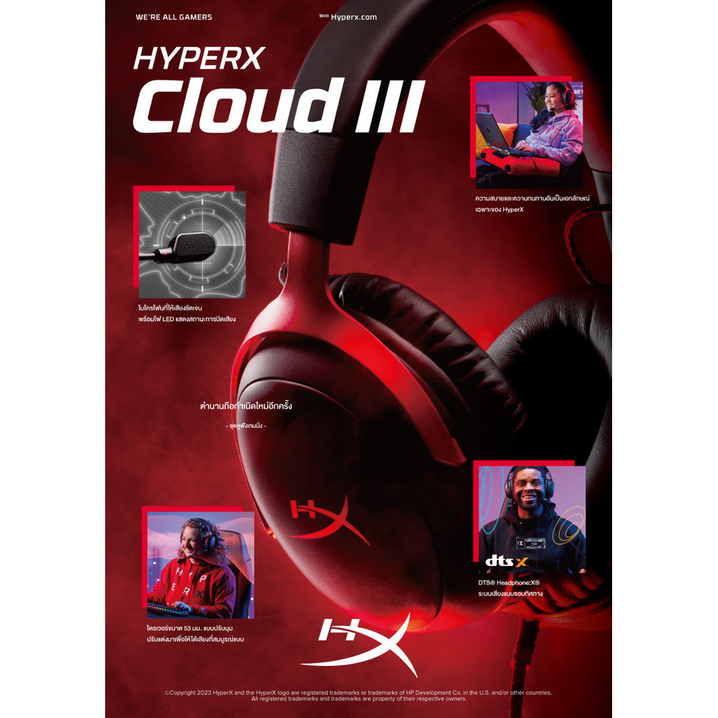 HyperX Cloud III Gaming Headset (Black-Red) (727A9AA) สินค้าแท้ ประกันศูนย์ 2 ปี
