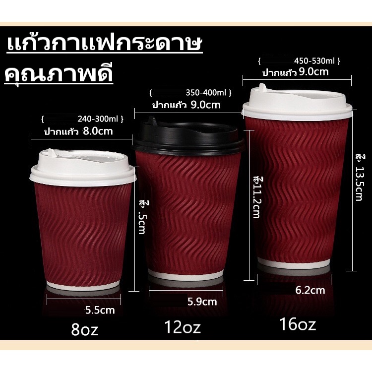 แก้วกาแฟร้อน ( 25ใบ) ดับเบิ้ลวอลล์ 8oz 12oz 14oz 16oz มีพร้อมฝาและเฉพาะแก้ว (ไม่มีฝาหัวใจ)