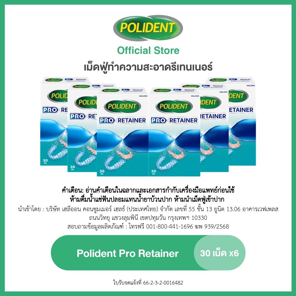 POLIDENT PRO RETAINER โพลิเดนท์ โปร รีเทนเนอร์ เม็ดฟู่ทำความสะอาดรีเทนเนอร์ 30 เม็ด X6