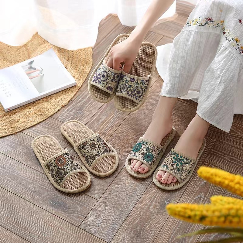 (XZ-12)สไตล์ญี่ปุ่น รองเท้าแตะผ้าลินิน รองเท้าใส่ในออฟฟิศ ป้องกันเท้าแตก