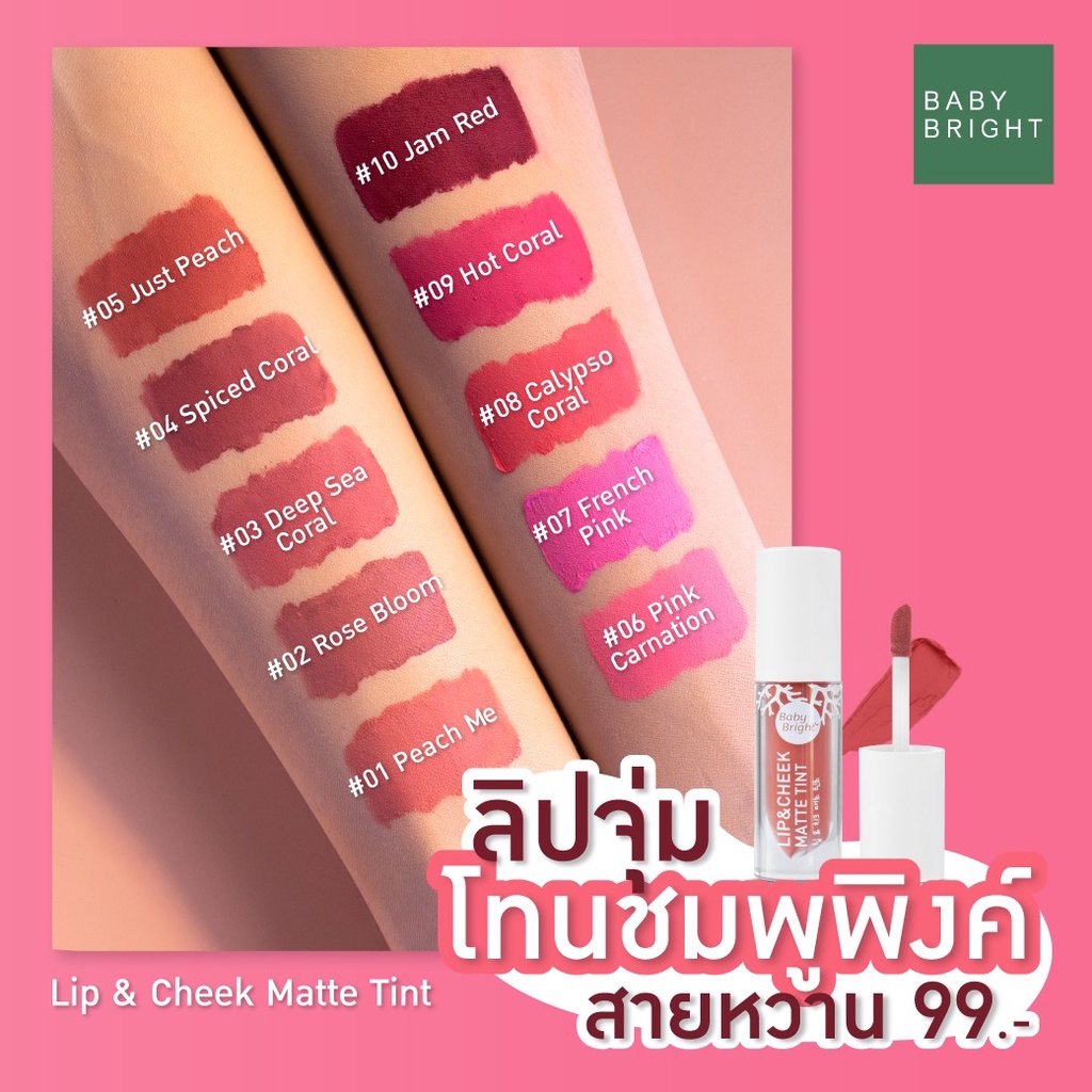 💥โล๊ะสต๊อก💥 ลิปแมทท์ กันน้ำ ติดทน【ปาก+ตา+แก้ม】Baby Bright Lip & Cheek Matte Tint 2.4g