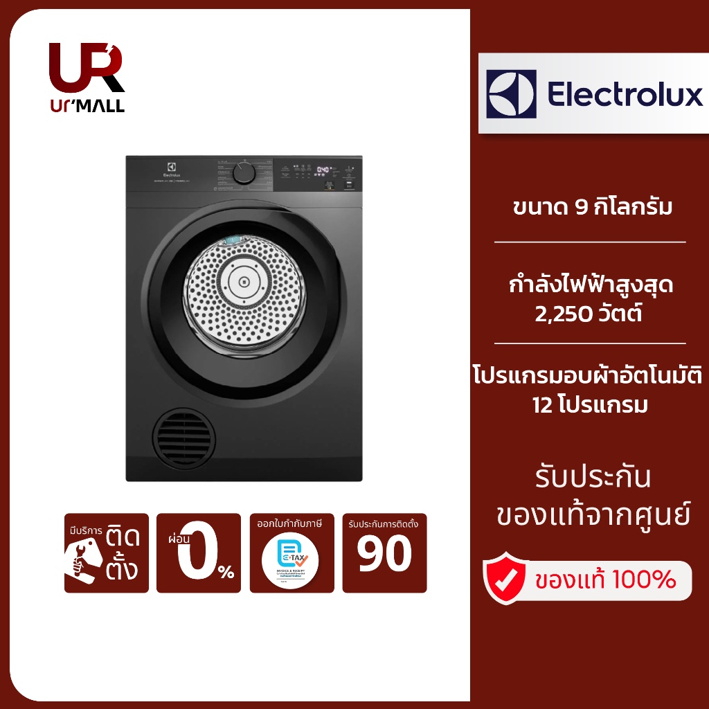 Electrolux เครื่องอบผ้า ขนาด 9 กิโลกรัม รุ่น EDS904N3SC สีเทาเข้ม เทคโนโลยีอบลมร้อน (Venting)