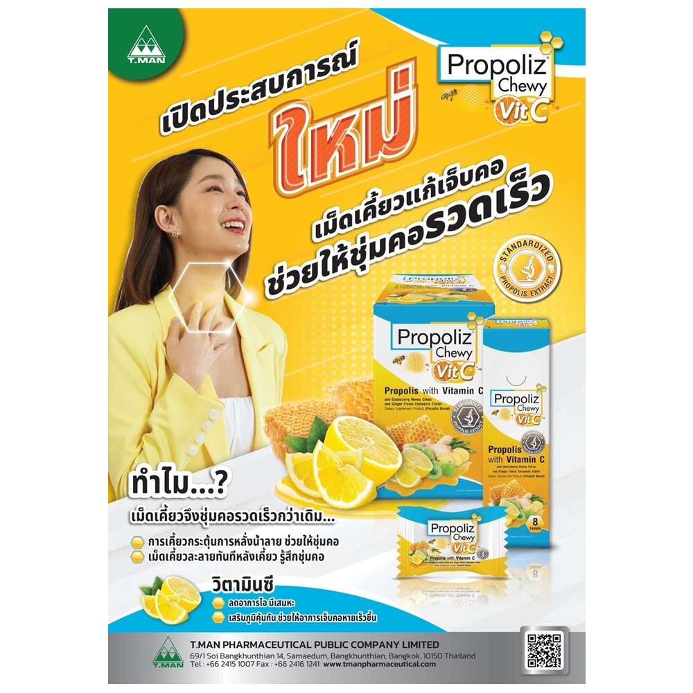 Propoliz Chewy VitC 8 pcs/box - โพรโพลิซ ชนิดเม็ดเคี้ยว วิตซี 8 เม็ด/กล่อง