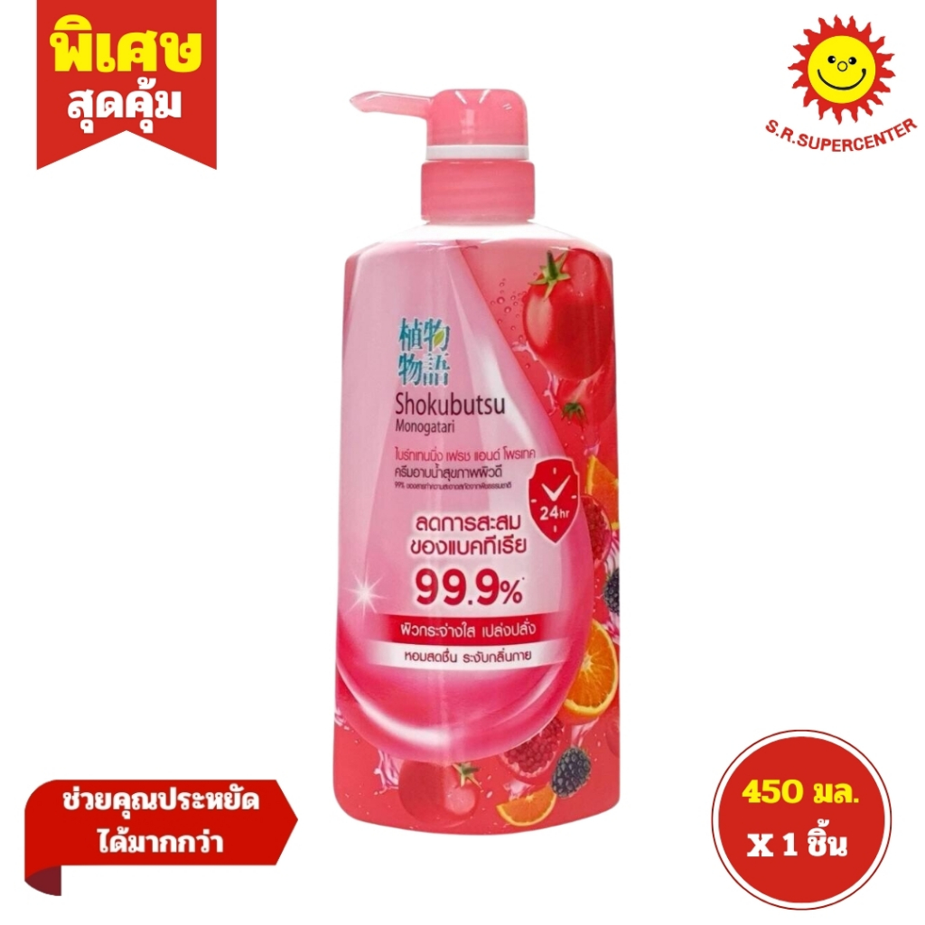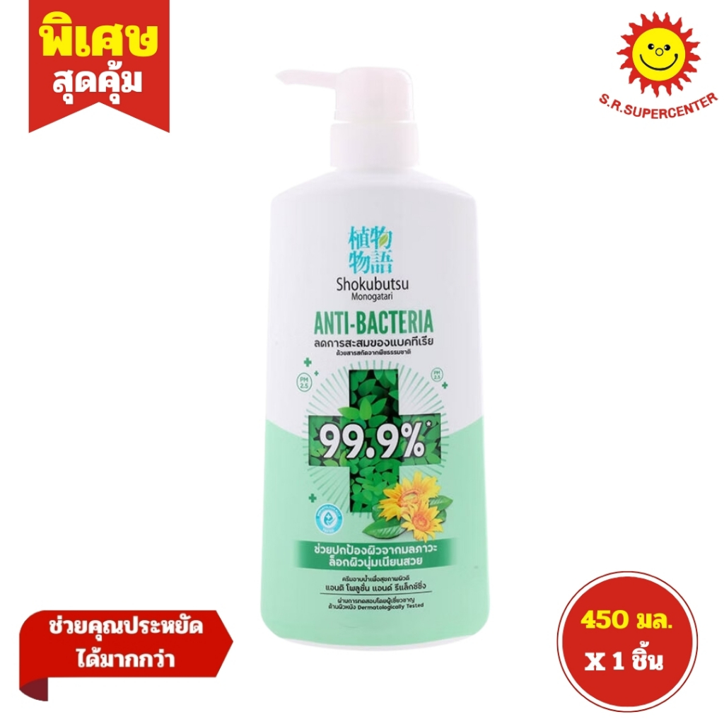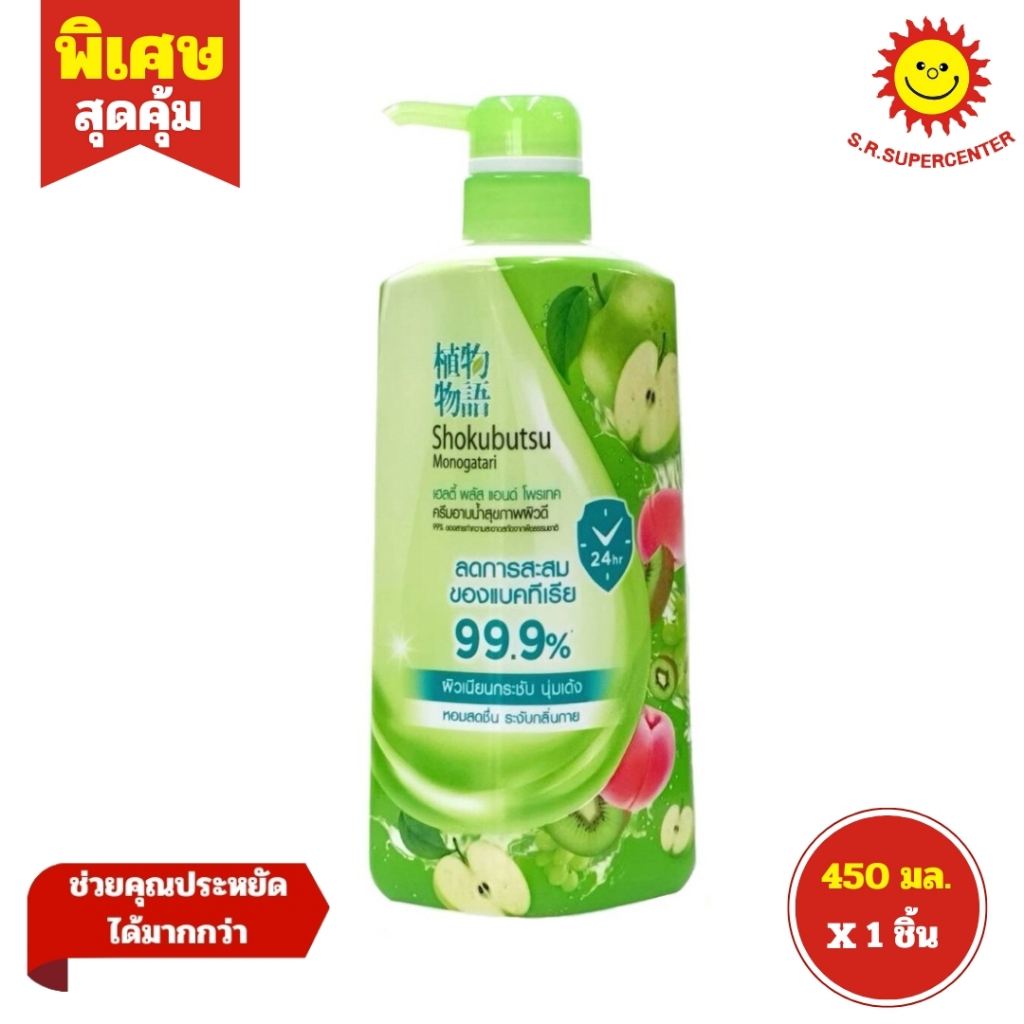 [ 1ขวด ] Shokubutsu โชกุบุสซึ ครีมอาบน้ำ ลดการสะสมของแบคทีเรีย 99.9% ขนาด 450-500 มล. (1ขวด) คละสูตร