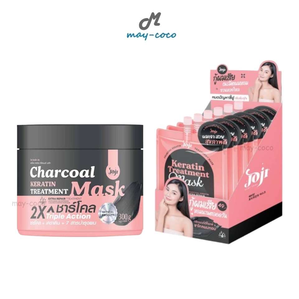 ถูก/แท้/มีไลฟ์ (ยกกล่อง 6 ซอง-กระปุก300g.) ทรีทเมนท์ JOJI Secret Young Charcoal Keratin Treatment Mask โจจิ ชาโคลผมหอม