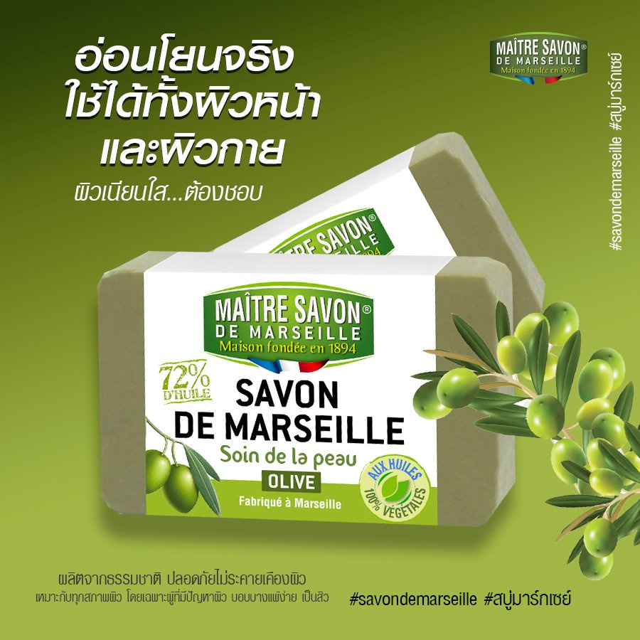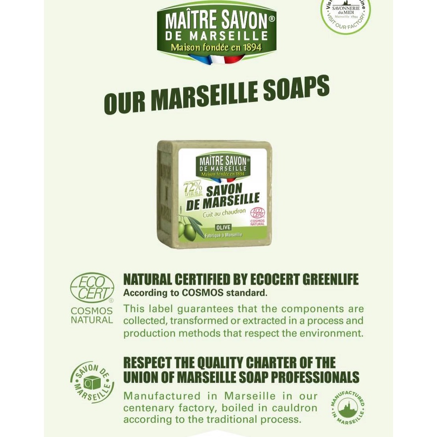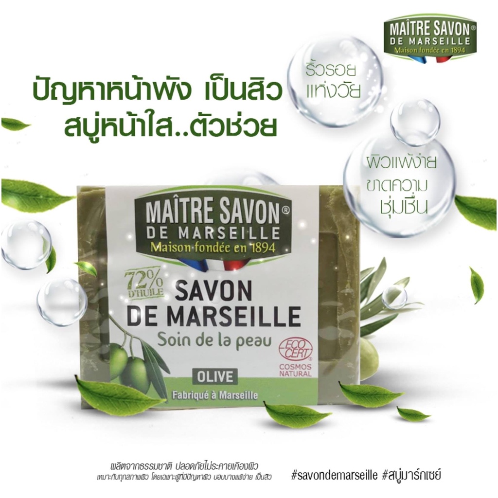 Maitre Savon สบู่มะกอกธรรมชาติ Soin de la peau Olive (100 g or 200 g)