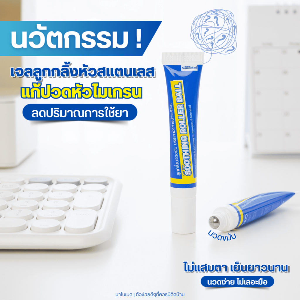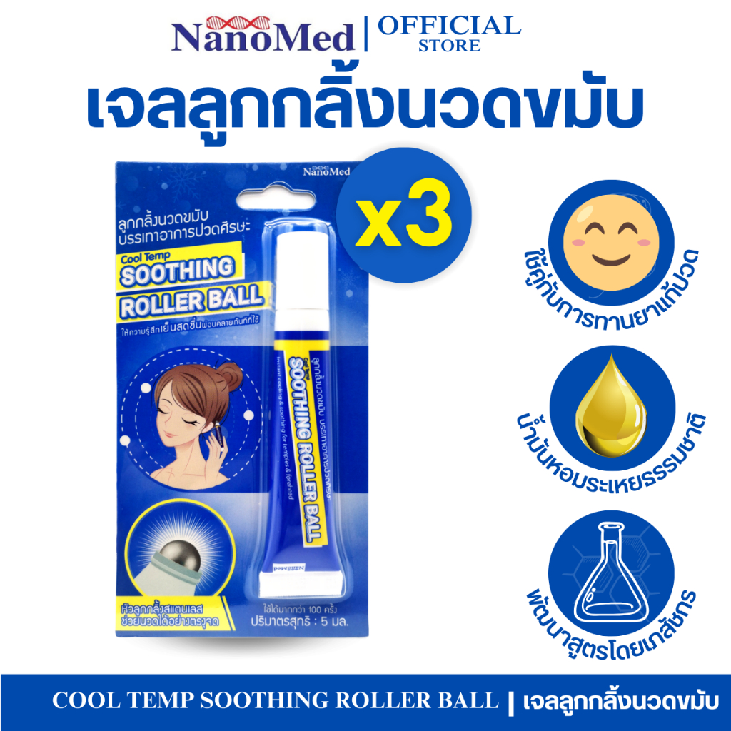 (3ชิ้น) เจลลูกกลิ้งนวดขมับ Cool Temp Soothing Roller Ball แก้ปวดไมเกรน วิงเวียน กลิ่นหอมสดชื่น 5ml