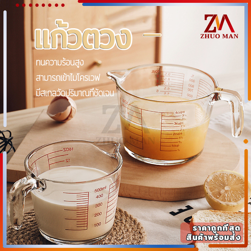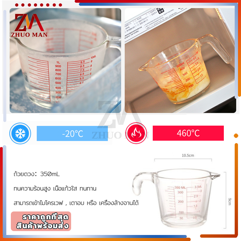 แก้วตวงชา ขนาด 350ML มีสเกลวัดปริมาณที่ชัดเจน สำหรับชงกาแฟ ชา และเป็นถ้วยตวงทำขนมได้ ใช้ตวงส่วนผสมต่างๆ เช่น น้ำตาล แป้ง