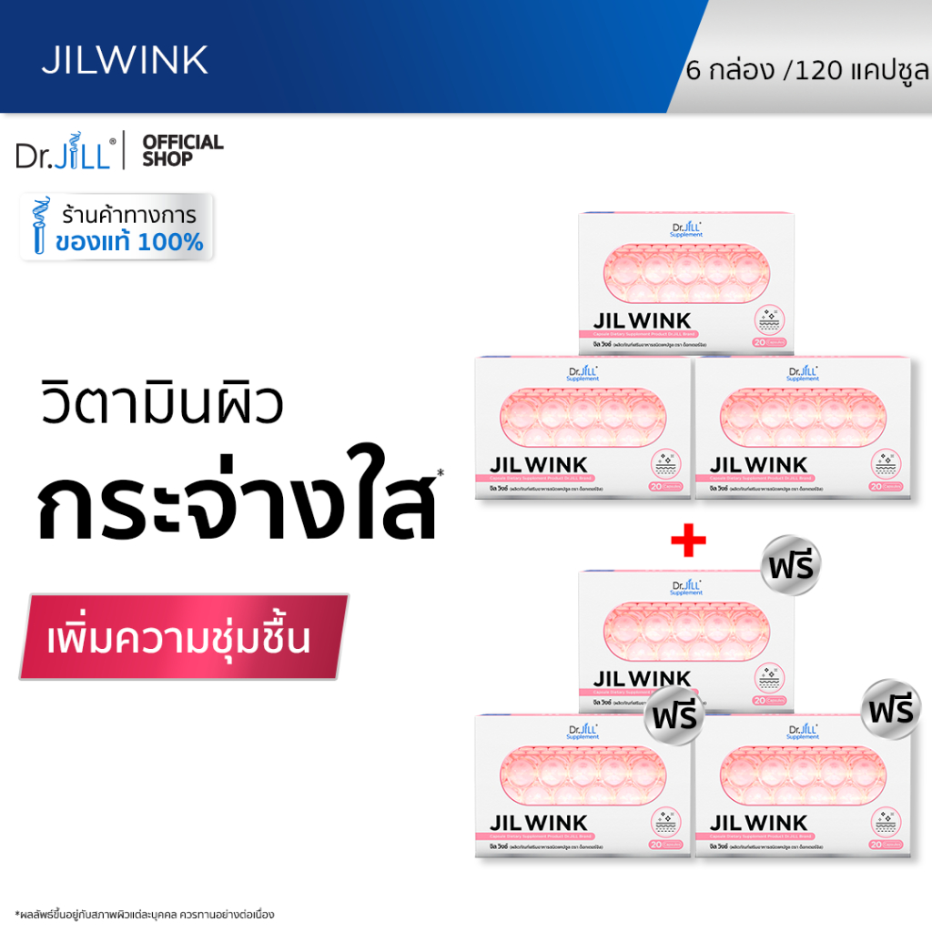 [ขายดี] จิลวิงซ์ 3 แถม 3 JIL WINK ผลิตภัณฑ์เสริมอาหารบำรุงผิว ดร.จิล 120 แคปซูล 6 กล่อง ผิวเรียบเนียน แ ลกระจ่างใส