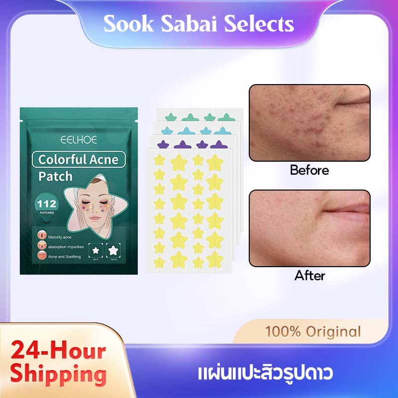 EELHOE แผ่นแปะสิวรูปดาว 112pcs Gently Cleanses & Soothes, Reduces Blemishes, Promotes Healing,Invisible Wear, Fun Design