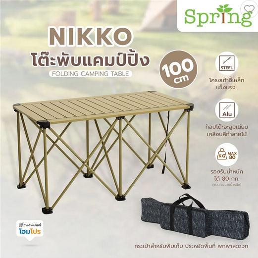 โต๊ะพับแคมป์ปิ้ง SPRING NIKKO 100 ซม. สีน้ำตาล