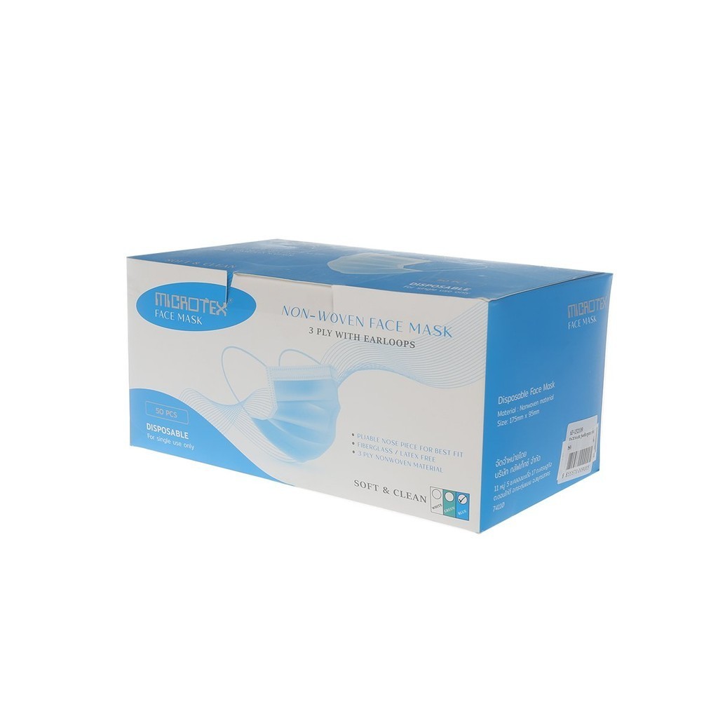 MICROTEX หน้ากากอนามัย 3 ชั้น สีฟ้า (50 ชิ้น) |B|