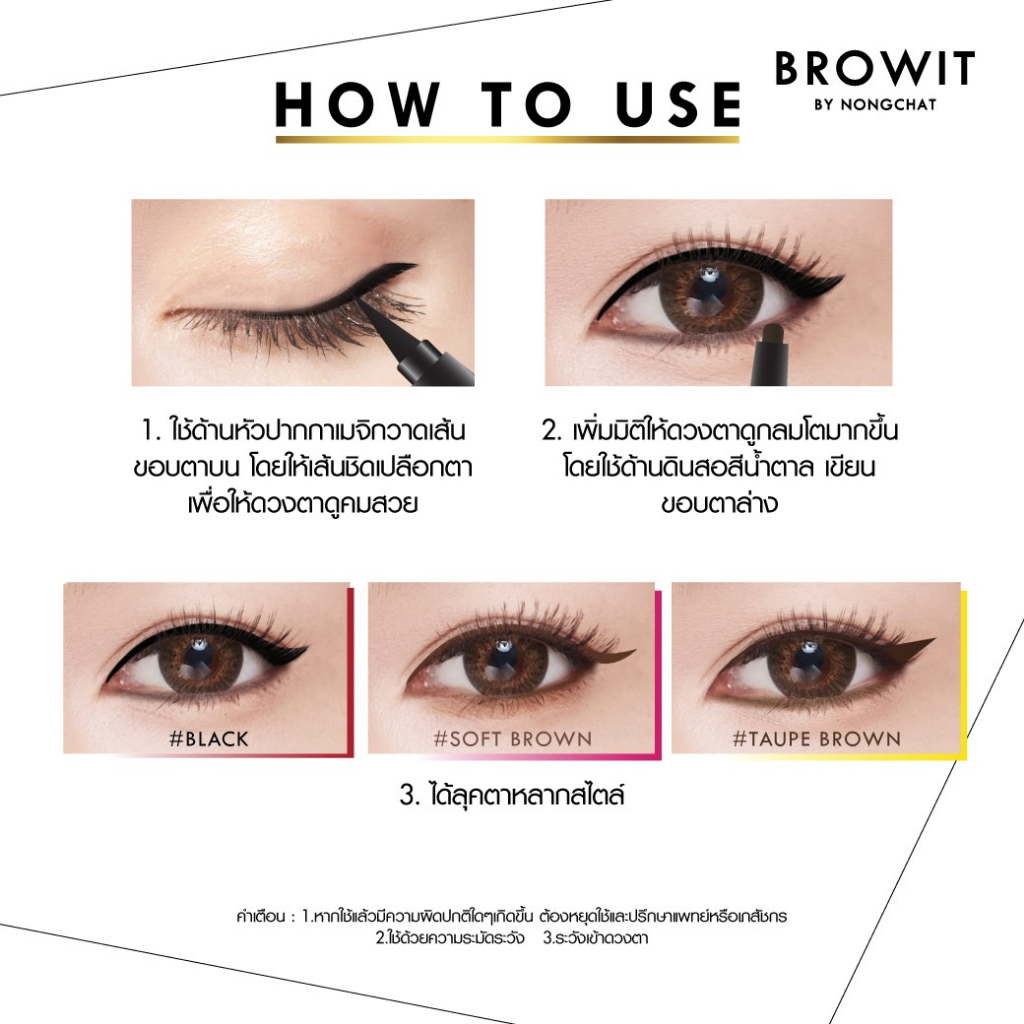 อายไลเนอร์ Browit By Nongchat High Technique Duo Eyeliner บราวอิท ไฮเทคนิค ดูโอ้ อายไลนเนอร์ 2 หัวในแท่งเดียว แห้งไว