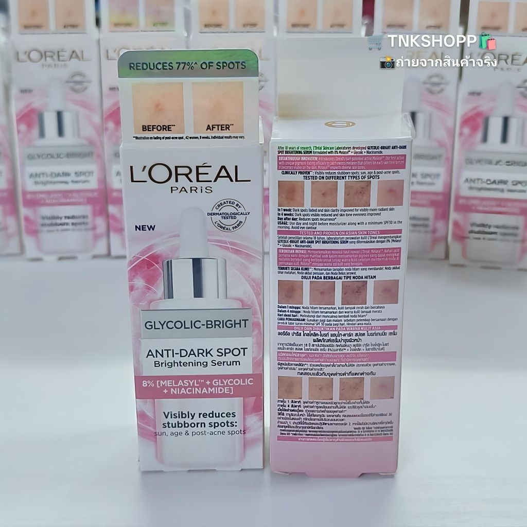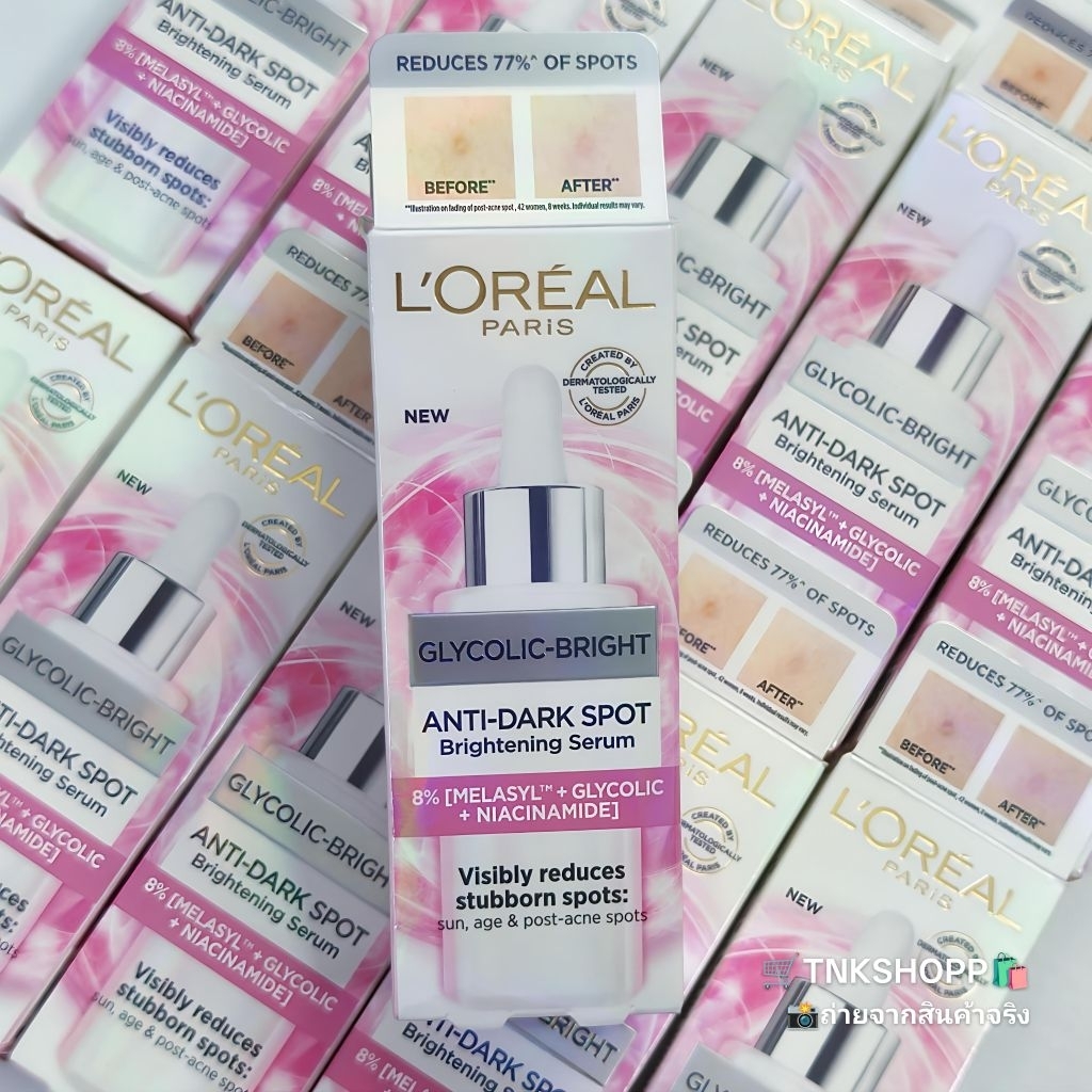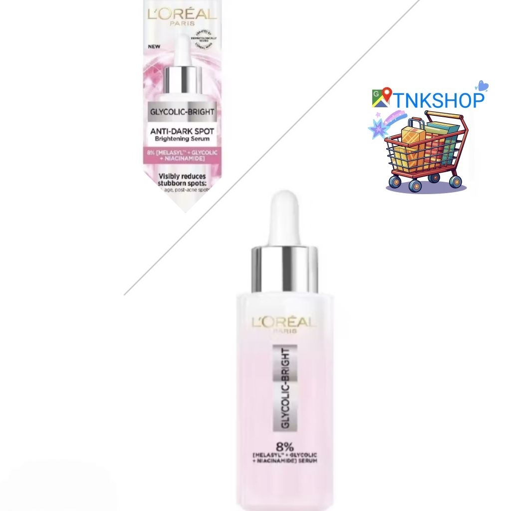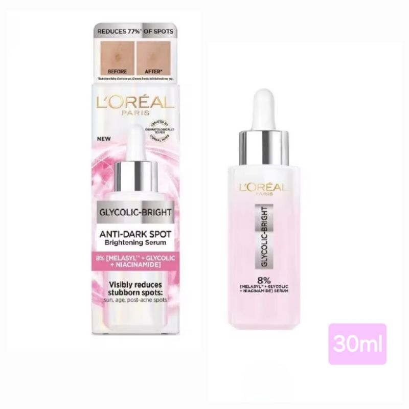 LOREAL GLYCOLIC-BRIGHT ANTI-DARK SPOT Brightening Serum 30ml เซ รั่มลดเลือนจุดด่างดำ EXP 2028 ✨️ของแท้จาก SHOP Official