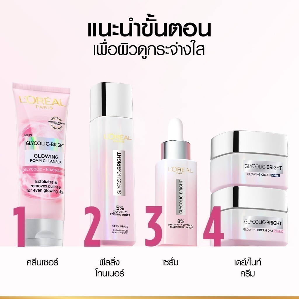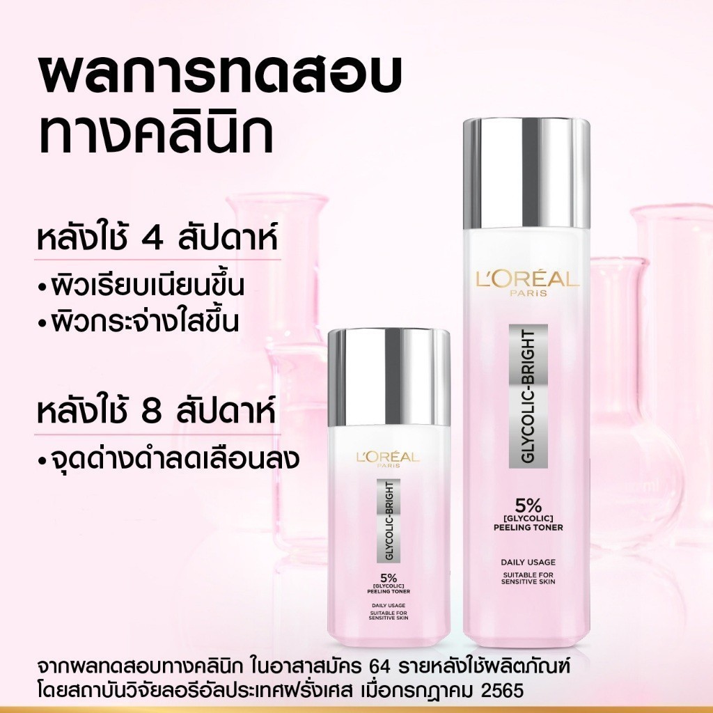 [ใช้โค้ดไลฟ์เหลือ 420.-] L'Oréal Glycolic Bright Peeling Toner 128ml โทนเนอร์ผลัดเซลล์ผิว เพื่อผิวดูเรียบเนียนกระจ่างใส