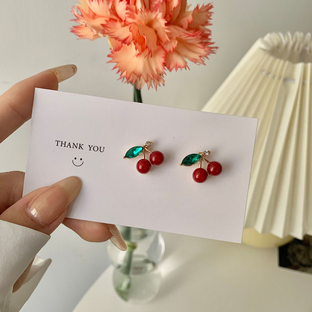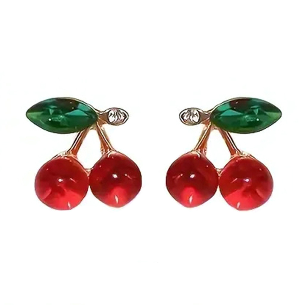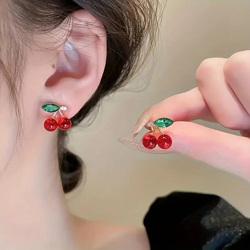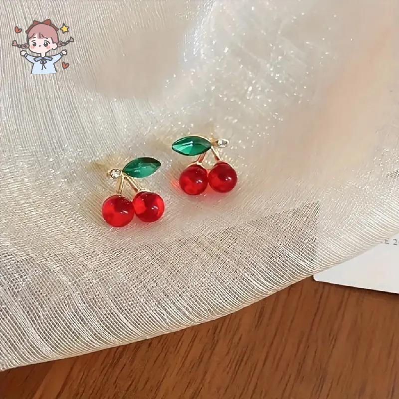 ต่างหูผู้หญิง 1 คู่ขนาดเล็กและทันสมัยสีแดงเชอร์รี่ผลไม้ต่างหูต่างหูหวานน่ารัก